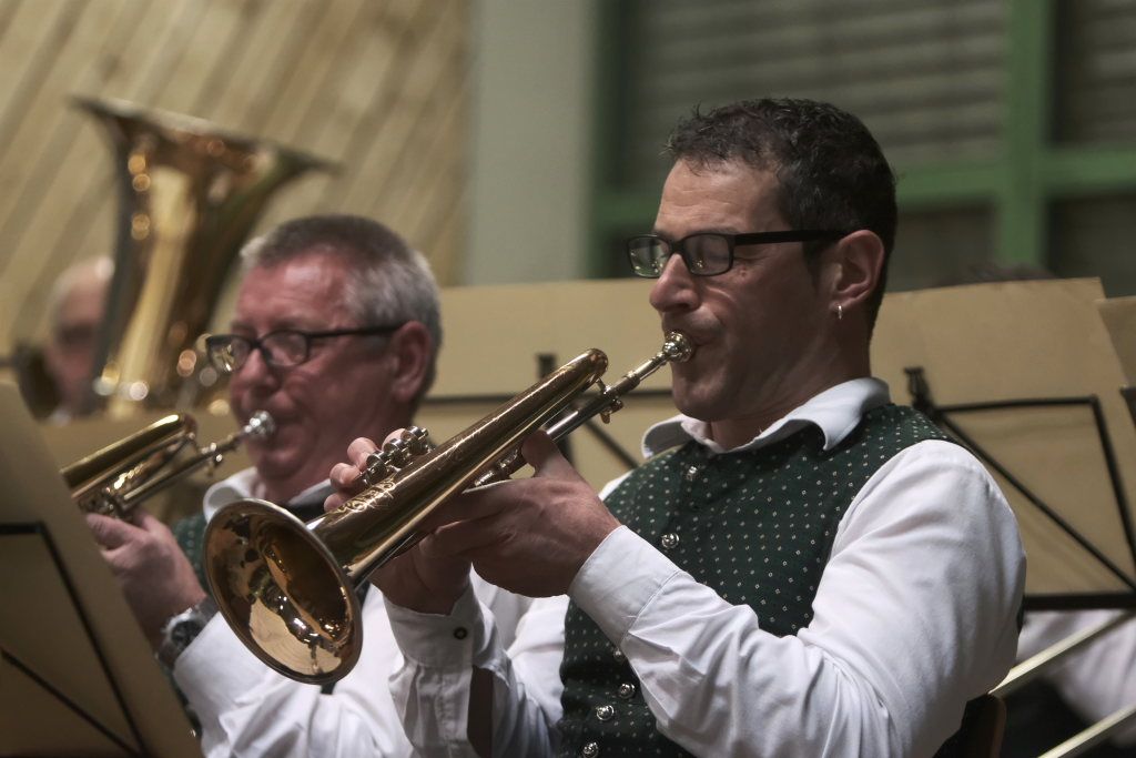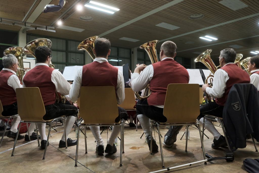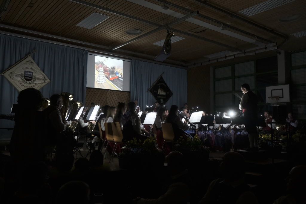 Natürlich durften auch die Musiker des Musikvereines Harmonie Unterschwarzach nicht ohne Zugabe von der Bühne: Auch sie spielten mit „Unsere Reise“ einen Hit der Schweizer Kultband und weil es so schön war ging es noch „Im Eilschritt nach St. Peter“, dessen Noten dem Verein von Karl-Josef Menig gespendet worden waren.
