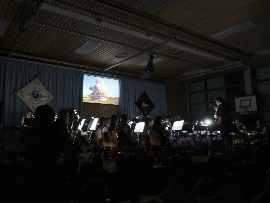„In 80 Tagen um die Welt“ frei nach Jules Verne, hat bereits jeder einmal gelesen oder im Fernsehen gesehen. Bei dem Werk von Otto M. Schwarz, bei dem die Halle in Unterschwarzach für eine Bildershow fast komplett abgedunkelt wurde, gab es für das Publikum neben den bildlichen Szenen auf der Leinwand auch ‚Kino für die Ohren“. Da wurde das Stampfen der Dampfrösser bei den Eisenbahnfahrten oder das Tröten der Elefanten musikalisch sehr plastisch dargestellt.