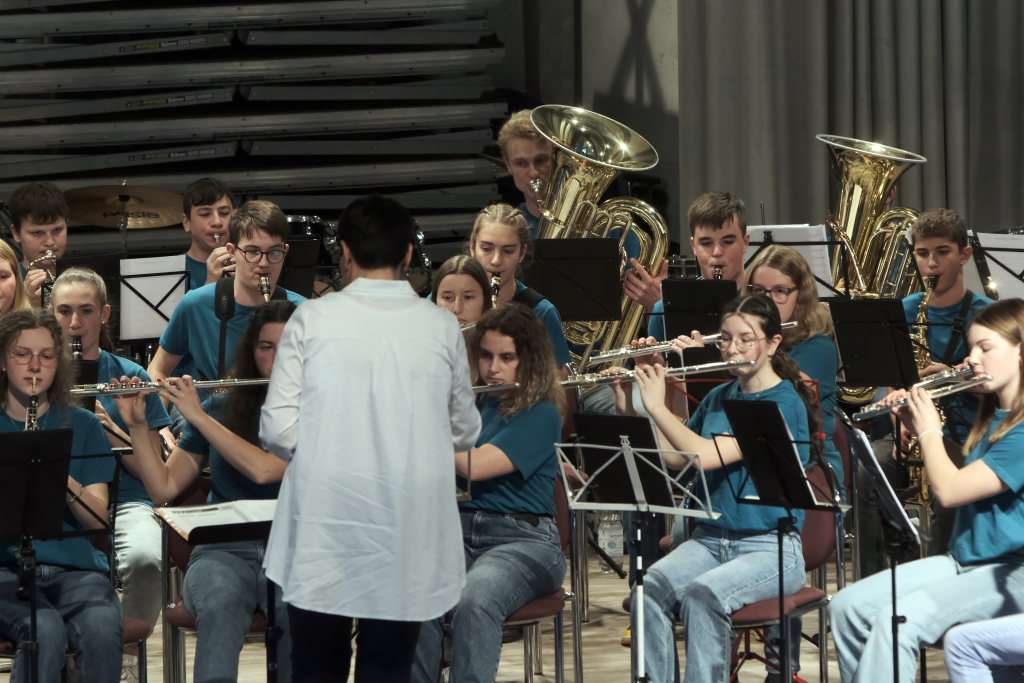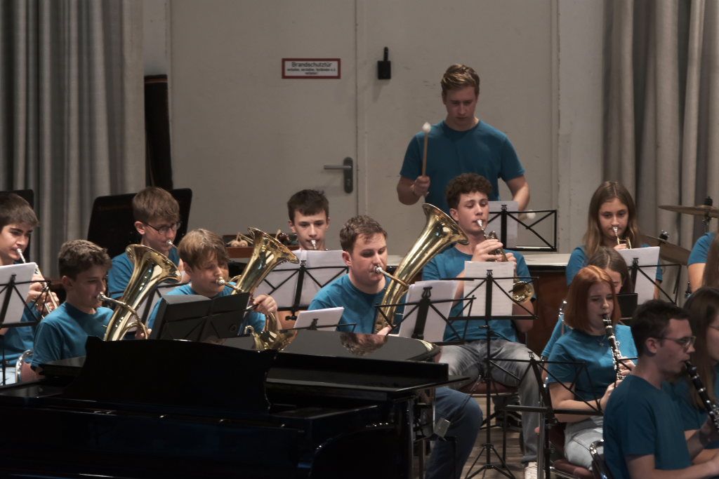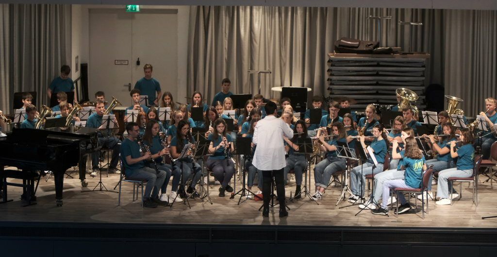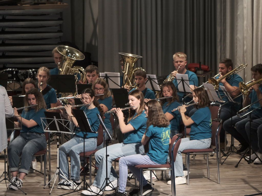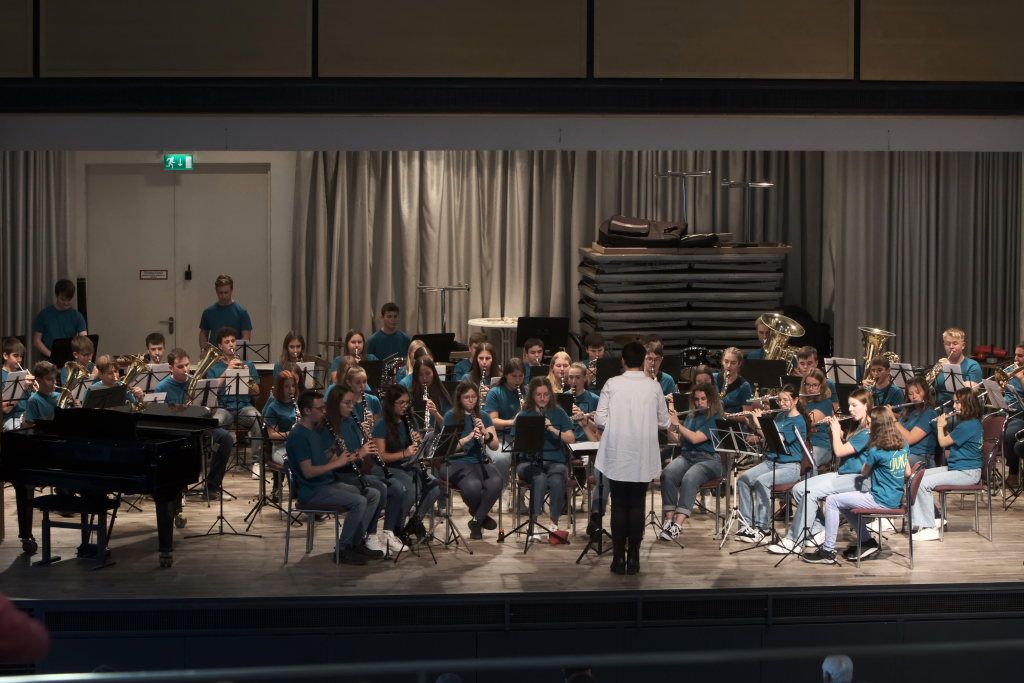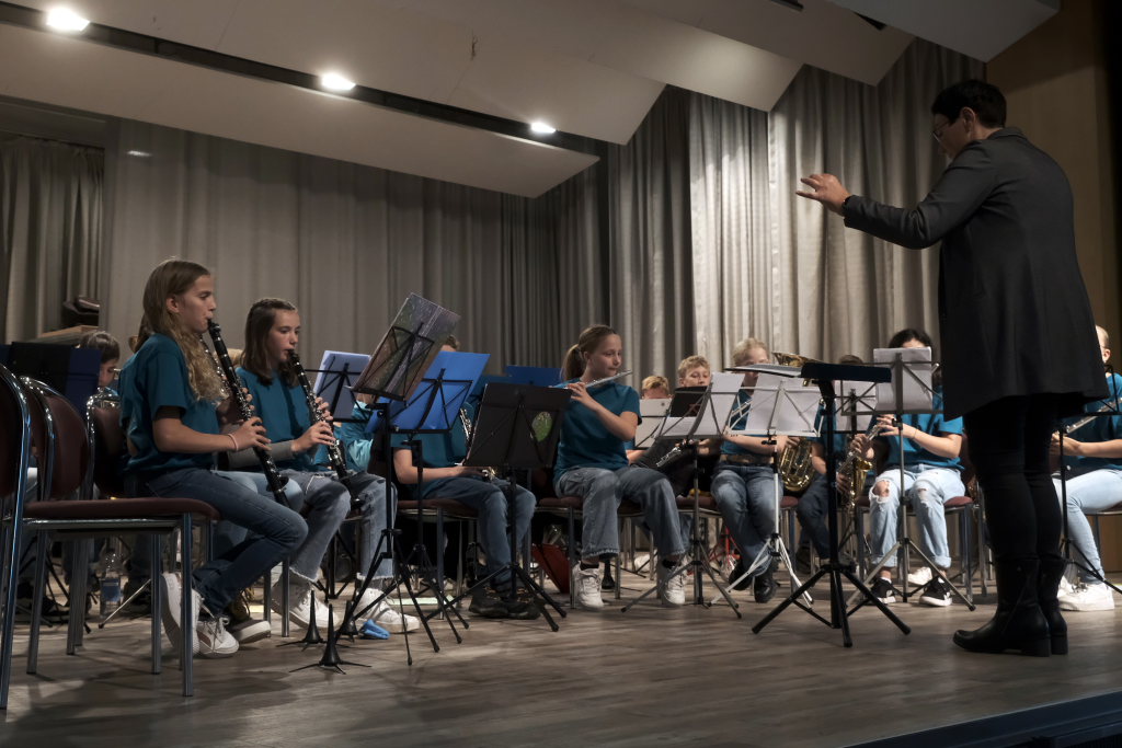 Vor der letzten Zugabe bedankte sich Petra Springer bei Delena Tanner, Amelie Stephan, Ramona Buchbinder und Leon Grösser, die teilweise schon länger als Springer selbst in der Jugendkapelle dabei waren und die Kapelle auch während Corona zusammengehalten hatten. Sie verlassen die Juka und werden zukünftig bei den „Großen“ mitspielen.