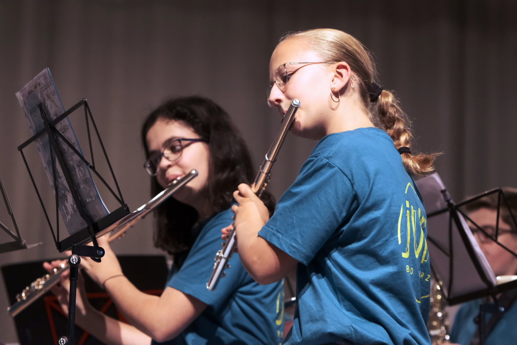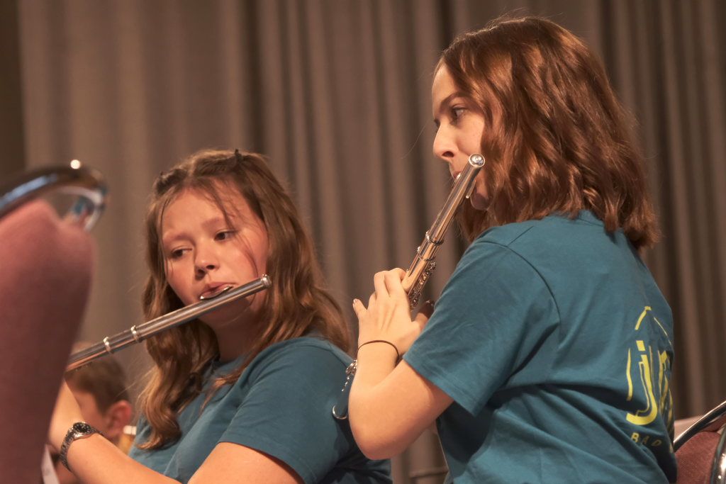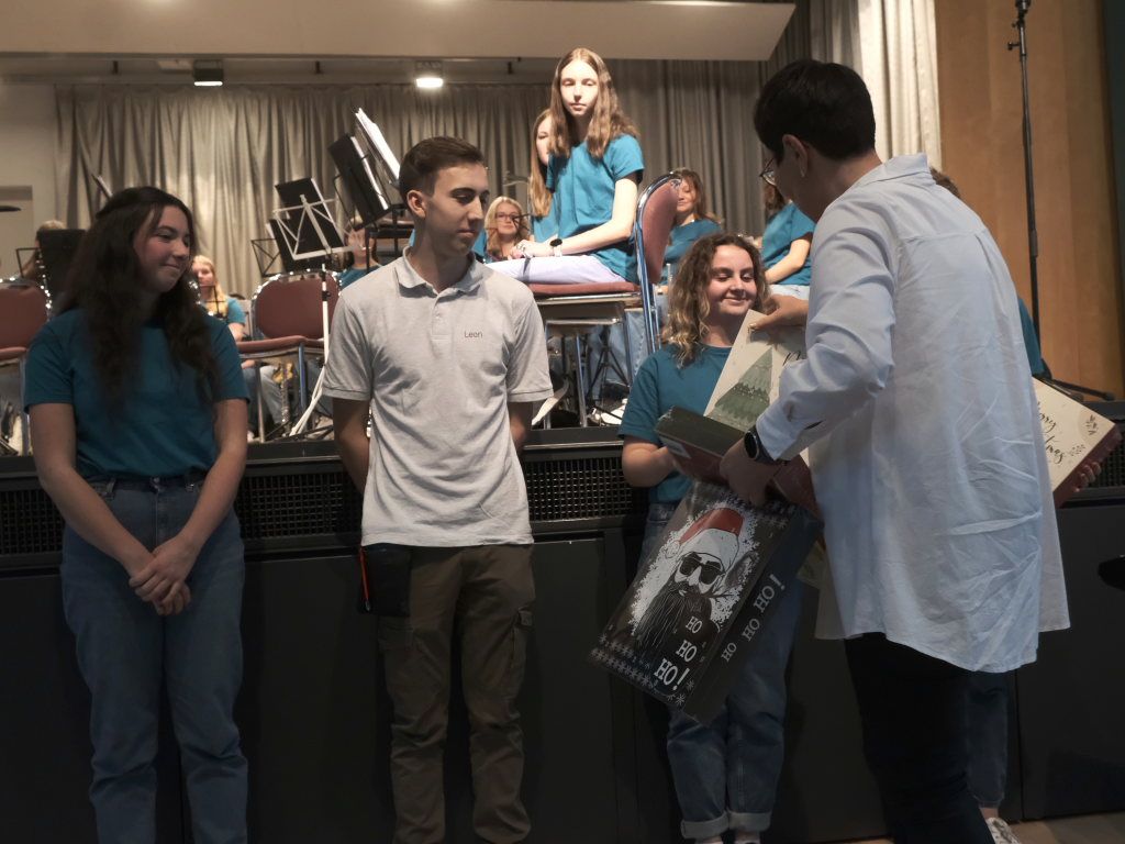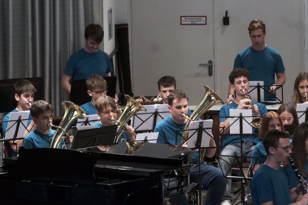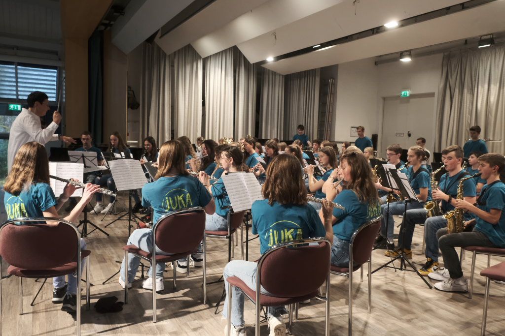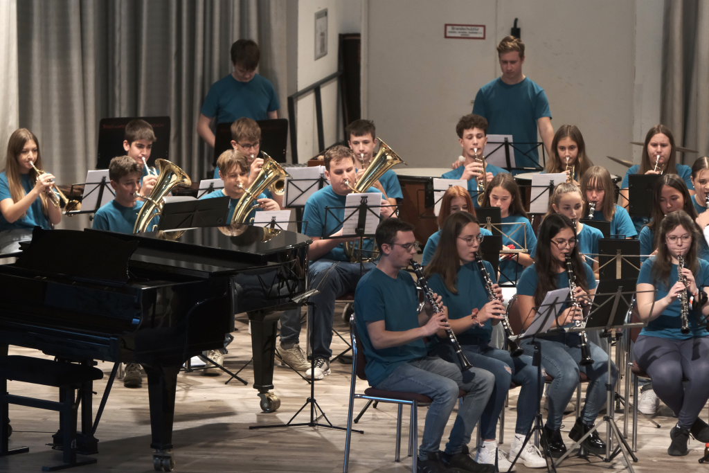 Vor der letzten Zugabe bedankte sich Petra Springer bei Delena Tanner, Amelie Stephan, Ramona Buchbinder und Leon Grösser, die teilweise schon länger als Springer selbst in der Jugendkapelle dabei waren und die Kapelle auch während Corona zusammengehalten hatten. Sie verlassen die Juka und werden zukünftig bei den „Großen“ mitspielen.