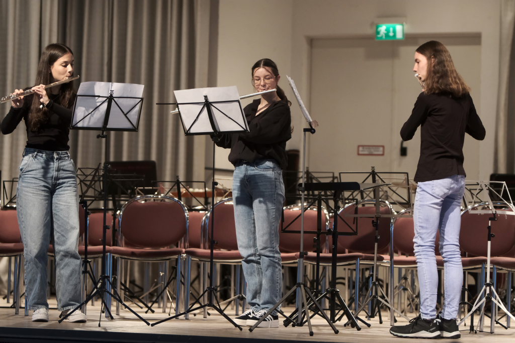 Selbiges gilt auch für das Geigen-Duo Elise Kazmeier und Anton Patzner von Michaela Elena Matei, die mit dem Duett Nr. 9 von Fereol Mazas das Publikum begeisterten. Ihnen folgten das Querflöten Trio mit Anna Butscher, Anna Osterkamp und Marlene Heinrich aus der Klasse von Bernadette Vogt, welche die Sonate in F-Dur von Johann Joachim Quantz vortrugen.