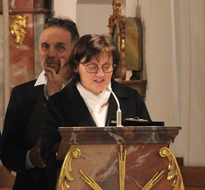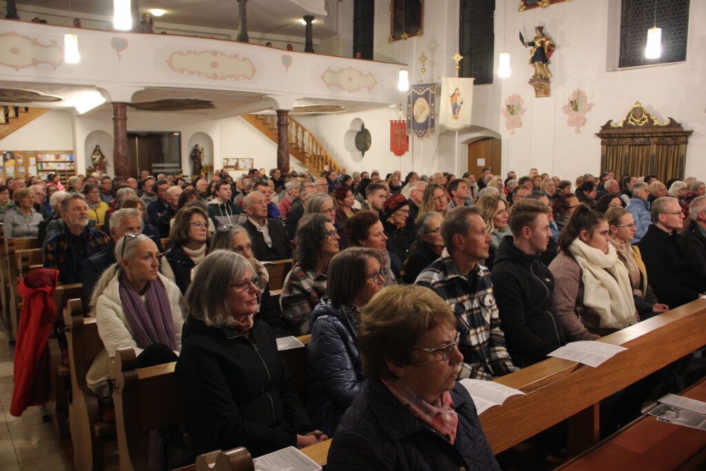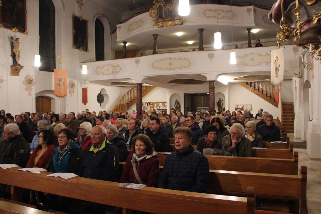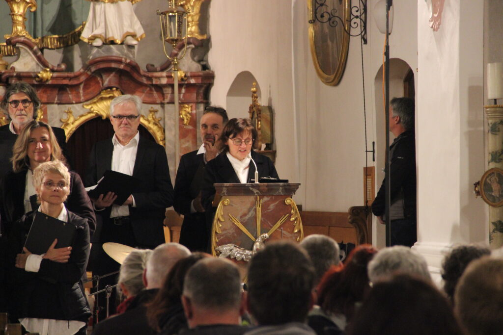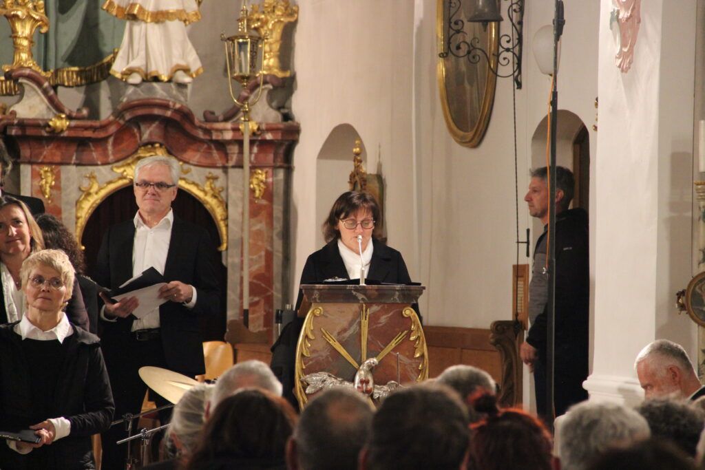Sylvia Buchbinder bei der Begrüßung. Sie freute sich sehr über den starken Besuch und dankte dafür. Eigens begrüßt wurden die beiden Pfarrer Stefan Maier und Patrick Meschenmoser sowie der Arnacher Kirchengemeinderat mit seinem Gewählten Vorsitzenden Thomas Baumann (der beim Konzert mitwirkte) und die ehemaligen Mitglieder des Kirchenchores Arnach, von denen etliche anwesend waren.
