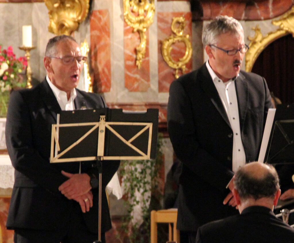 Zum „Panis angelicus“ in der Fassung von César Franck rückte der Chor zur Seite und gab den zwei Tenören Bruno Mösle (links) und Werner Rogg Raum für ihr Solo.