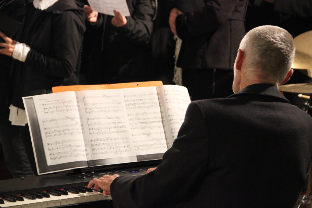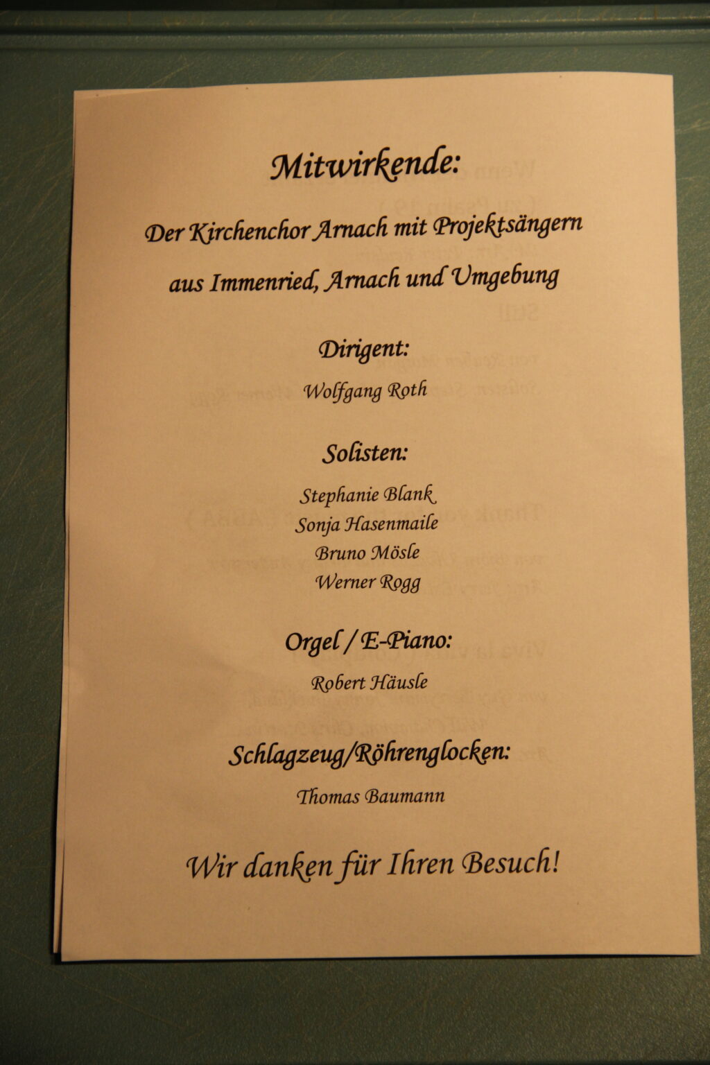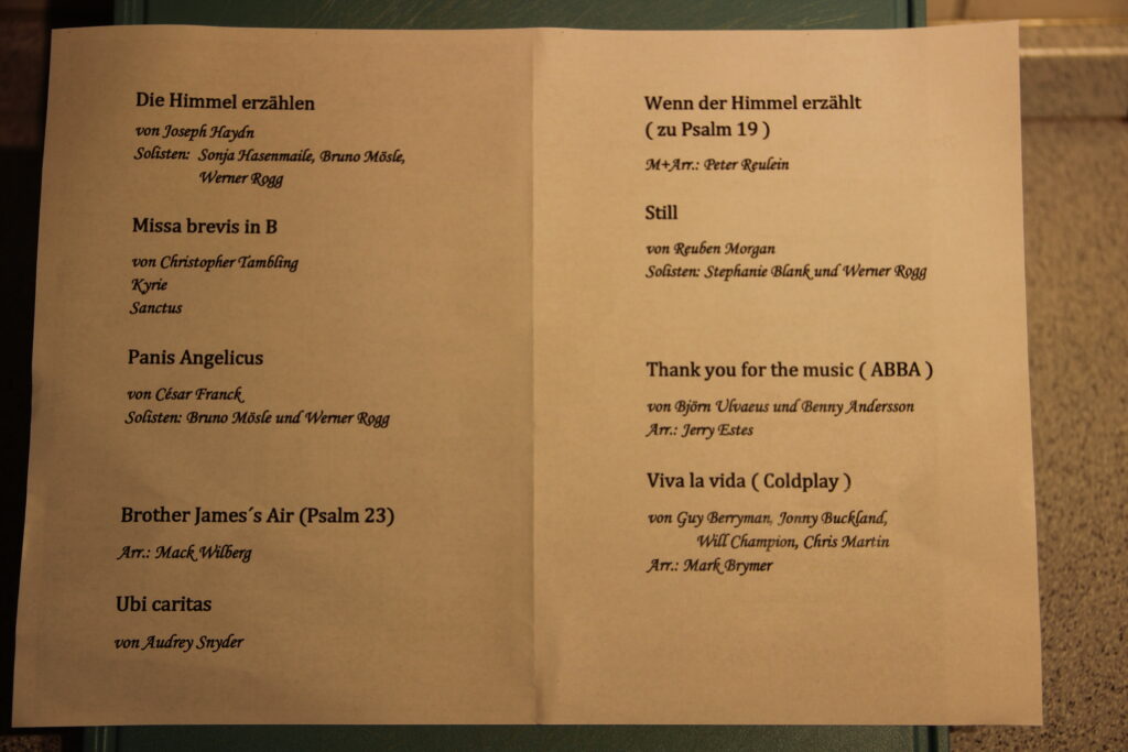 Die 28 Sänger und Sängerinnen wurden instrumental begleitet von Robert Häusle (Orgel; E-Piano) und Thomas Baumann (Schlagzeug; Röhrenglocken).