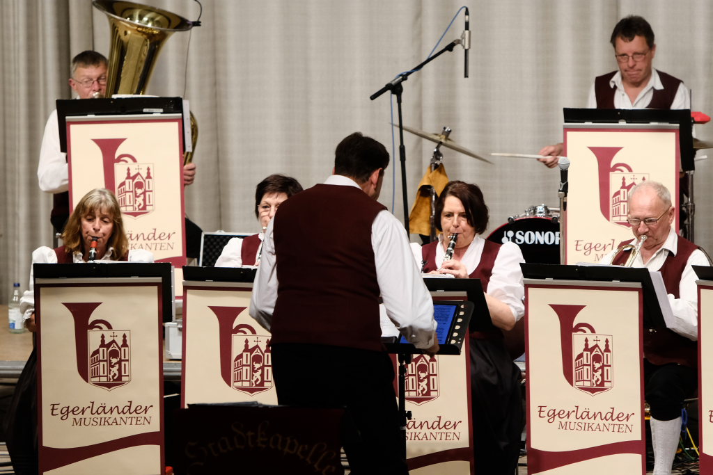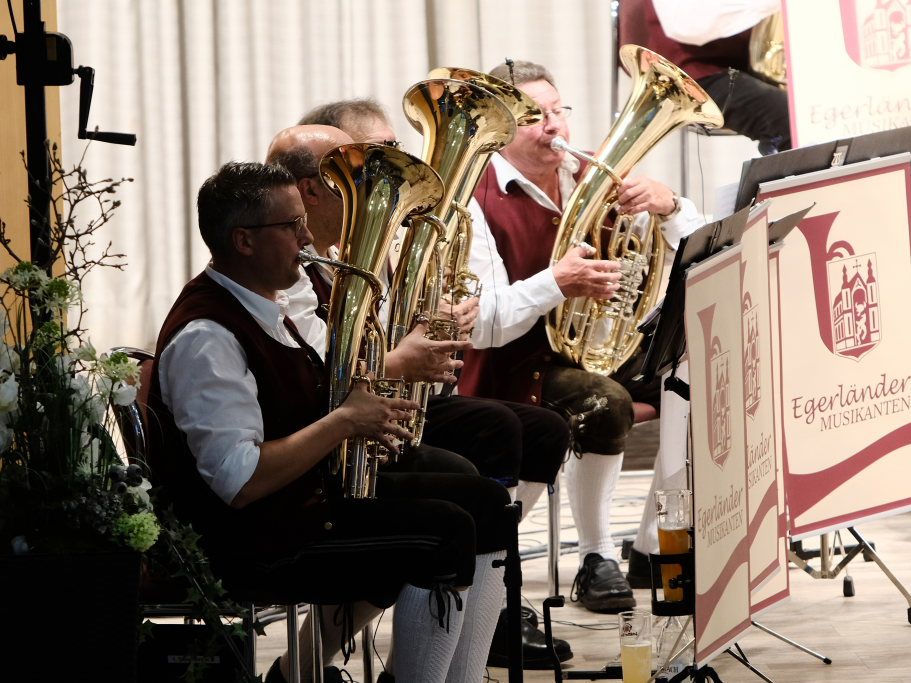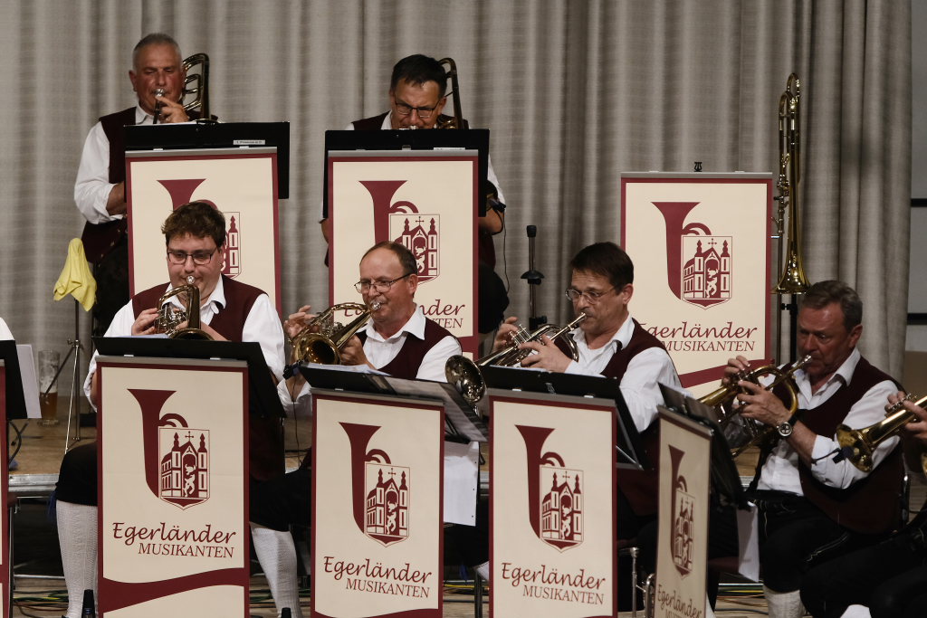 Auf die „Amselpolka“ ließen Hutzel und seine Musiker „Sterne der Heimat“ folgen, auf den „Strohwitwer“ „Wir sind Kinder von der Eger“. Auf die „Fuchsgraben Polka“ von 1981 blies mit dem Walzer ein „Böhmischer Wind“ durch den gut gefüllten Kursaal, bei dem sich besonders die Klarinetten der Gruppe auszeichnen konnten.