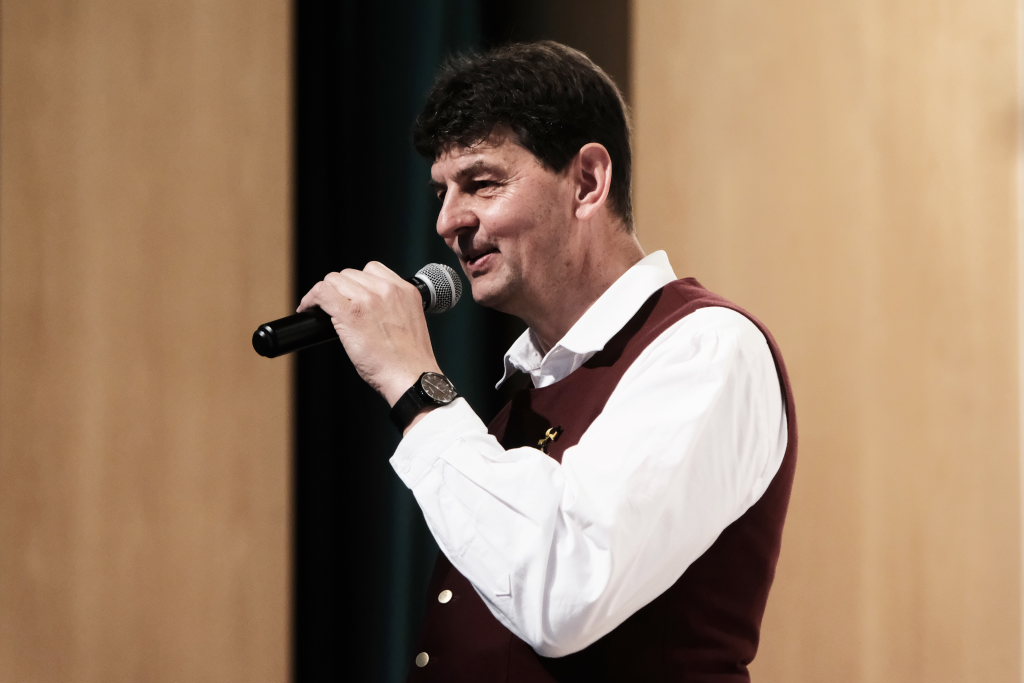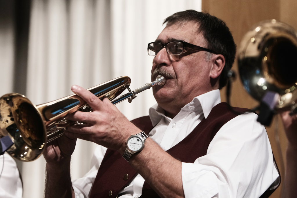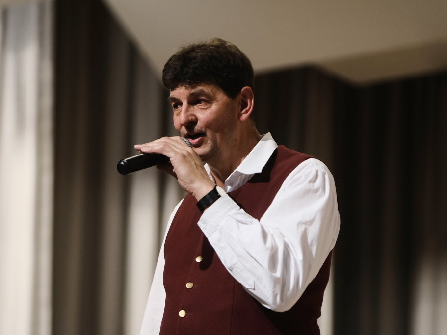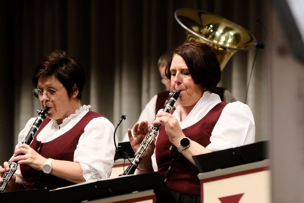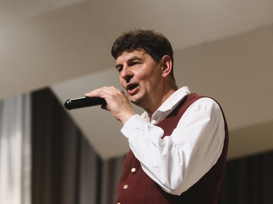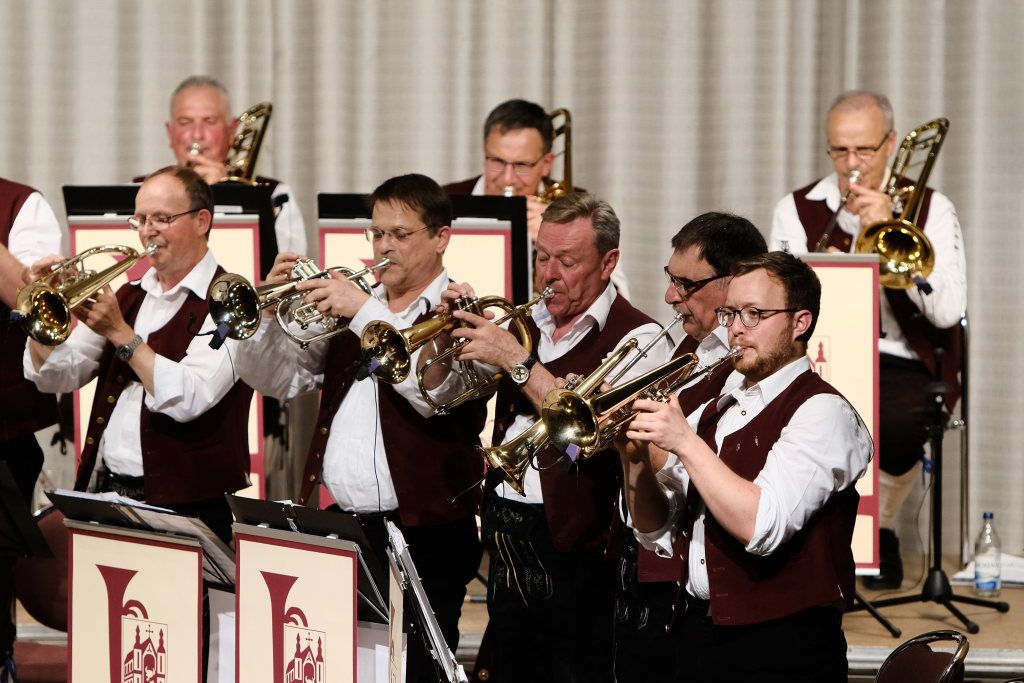 Das Orchester eröffnete den Auftritt mit dem Konzertmarsch „Carpe diem“ von Alexander Pfluger, frei übersetzt bedeutet das: „Genieße den Tag“ und das empfahl Richard Nothelfer, der Ansager der Gruppe, auch dem Publikum für diesen Abend. Nothelfer konnte einige Informationen und Anekdoten zu den Titeln des ersten Konzertteiles beisteuern, die ausschließlich aus dem Repertoire von Ernst Mosch und seinen Original Egerländer Musikanten entstammten, mit dem dieser zu Weltruhm gelangte und der ohne Zweifel auch für die Ochsenhausener Egerländer großes musikalisches Vorbild war. Nothelfer konnte sich noch gut an ein Konzert von Ernst Mosch und seinen Original Egerländern 1964 in Berkheim erinnern, das er als kleiner Junge besuchen durfte, also zu einer Zeit, in der die meisten seiner Mitmusiker noch gar nicht geboren waren…