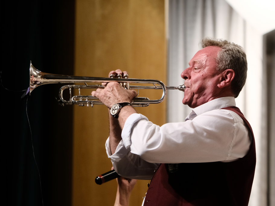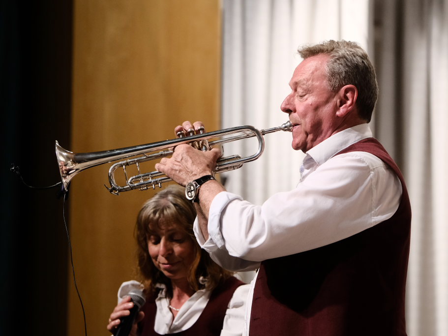 Vor der Pause hatten die Egerländer um Werner Hutzel noch eine Premiere im musikalischen Gepäck: Mit „Ich möcht´ so gern Trompete spielen“, bei dem sich Werner Nothelfer mit seiner Trompete gemeinsam mit Sängerin Margit Schiele als Solist auszeichnen konnte, präsentierten die Musikanten eine neue Komposition von Peter Schad, dem die Gruppe dann den zweiten Teil ihres Konzertes widmete.