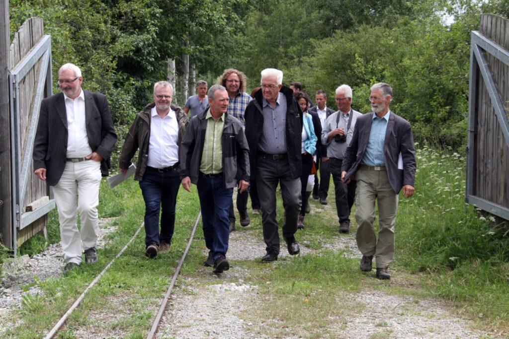 22. Juni 2018: Ministerpräsident Winfried Kretschmann mit Tross im Wurzacher Ried. Links neben dem Regierungschef Horst Weisser, der damalige Leiter des Naturschutzzentrums „Wurzacher Ried“.