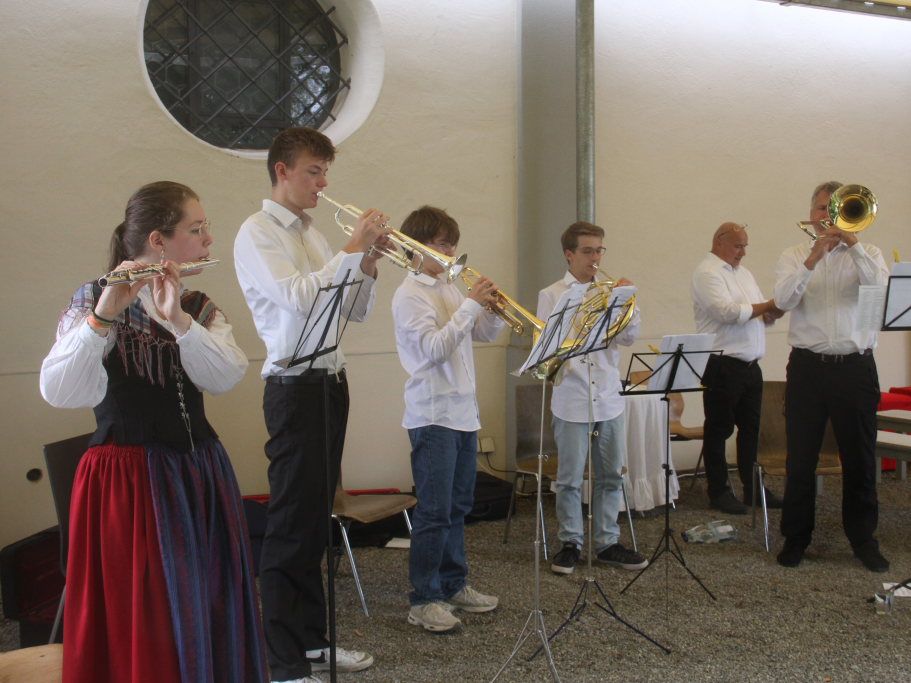 Die musikalische Begleitung dieses Wortgottesdienstes durch eine Gruppe  „Schlossbläser“  von Berhard Klein wäre beinahe ins Wasser gefallen. Denn einige von ihnen war erst in der Nacht vom Schüleraustausch mit der englischen Partnerstadt Wallingford zurückgekehrt.