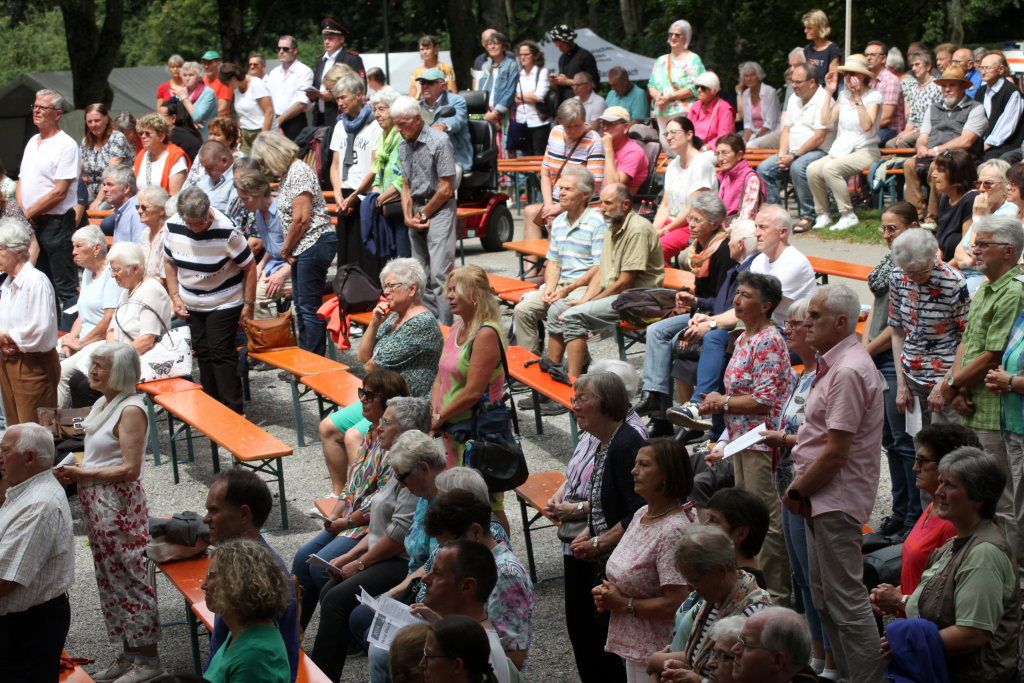 Der Prediger stellte auch die rhetorische Frage: „Ist das, was wir an diesem Tag des Heiligblutfestes tun, noch zeitgemäß?“ Das, was in der Eucharistiefeier geschehe, wie etwa beim Pontifikalamt ein paar Stunden zuvor, dass nämlich Gott selbst zu den Menschen komme und sich ihnen hingebe, das stehe anderntags nicht in der Zeitung. Der geistliche Leiter von Regina Pacis legte Wert darauf, den Blick auf das zu lenken, was die Kirche Gutes tue.