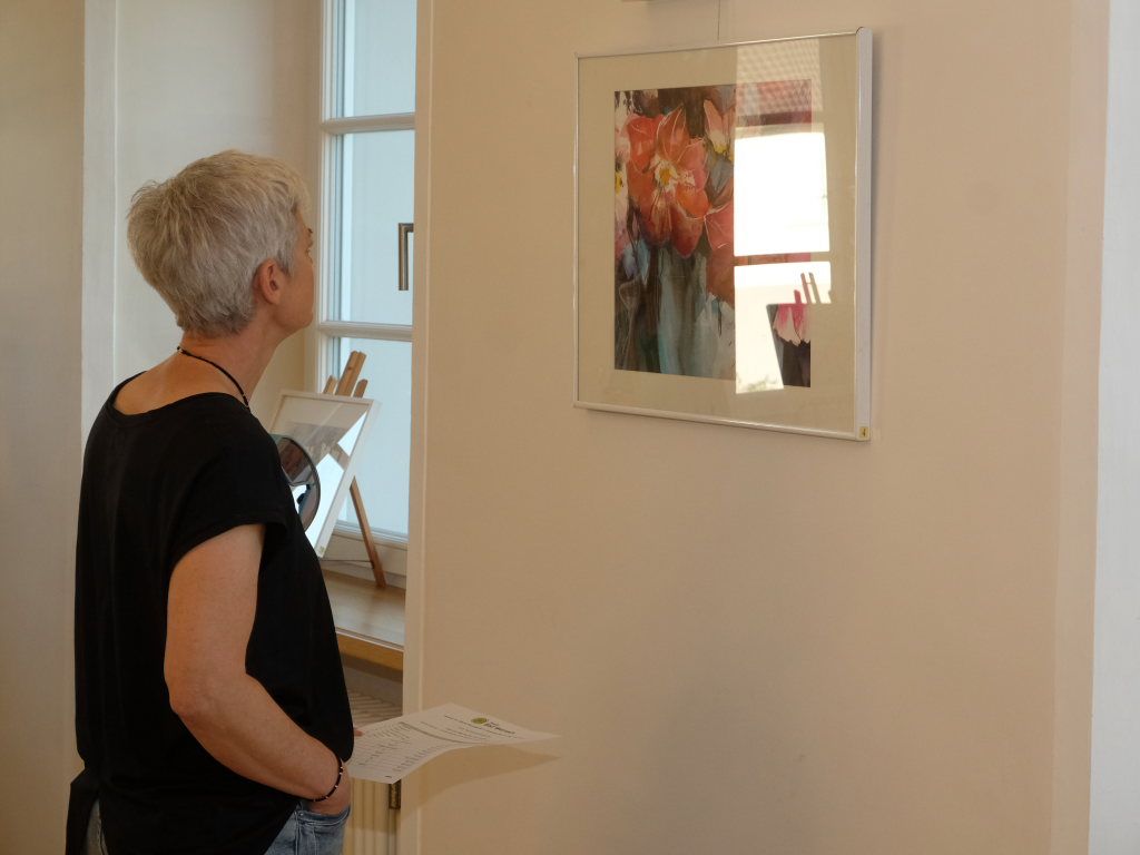 In der Ausstellung präsentiert sie einige auf diese Weise entstandenen Portraits in Öl, aber auch viele Aquarelle und Bleistiftzeichnungen. Die Ausstellung ist zu den üblichen Öffnungszeiten der Stadtbücherei noch bis zum 28. Juni zu sehen.