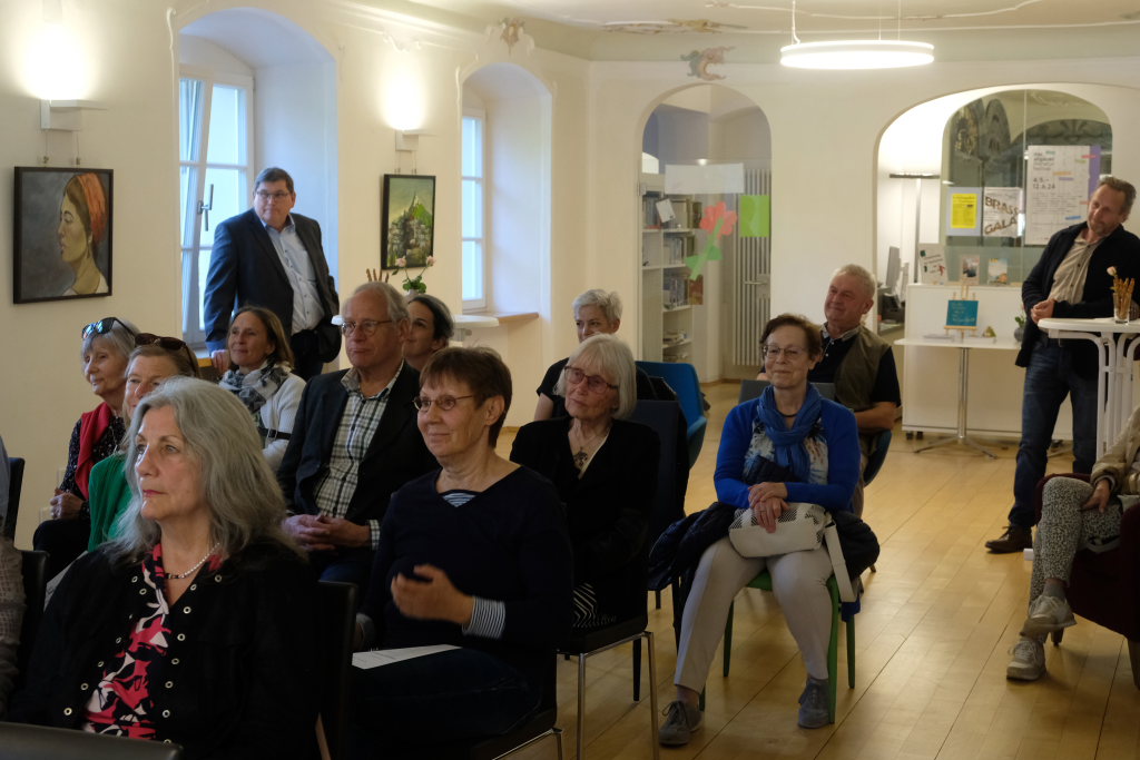Die Künstlerin Silvia Greiner aus Weingarten stellt unter diesem Titel bis zum 28. Juni mehr als 36 Bilder in verschiedenen Techniken (Aquarell, ÖL, Farbstift, Bleistift und Graphit) und Genre (Landschaft, Stadtansicht, Portrait, Stilleben) in der Stadtbücherei rund um den Kapitelsaal aus.