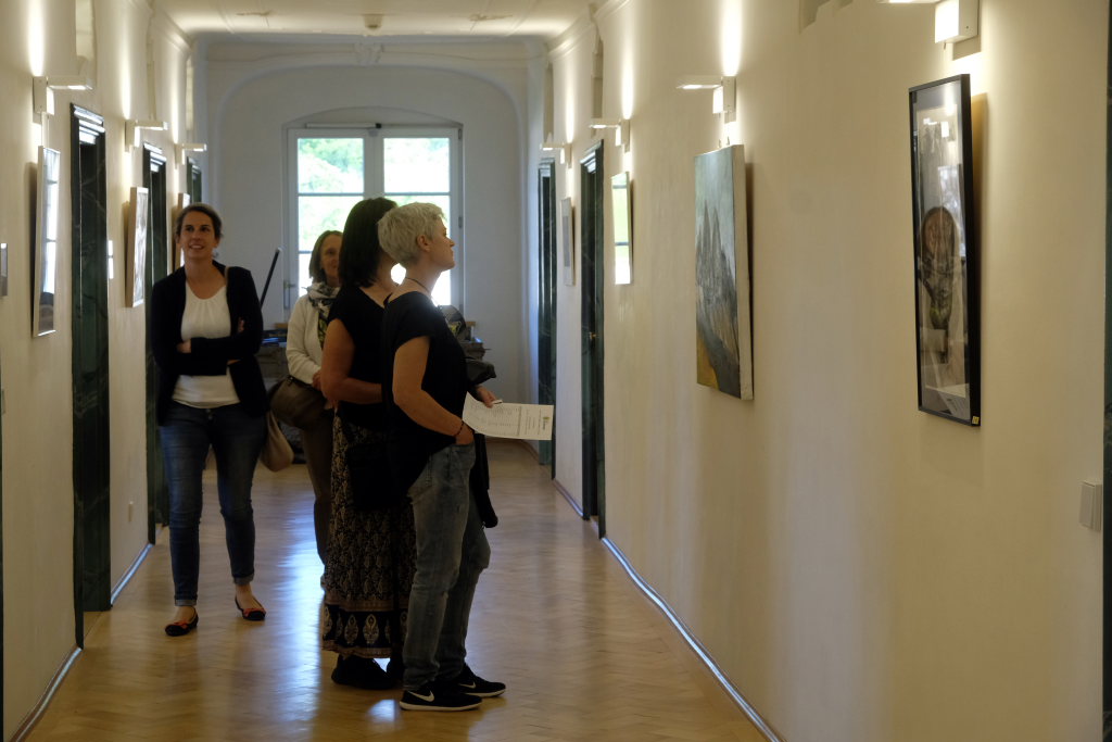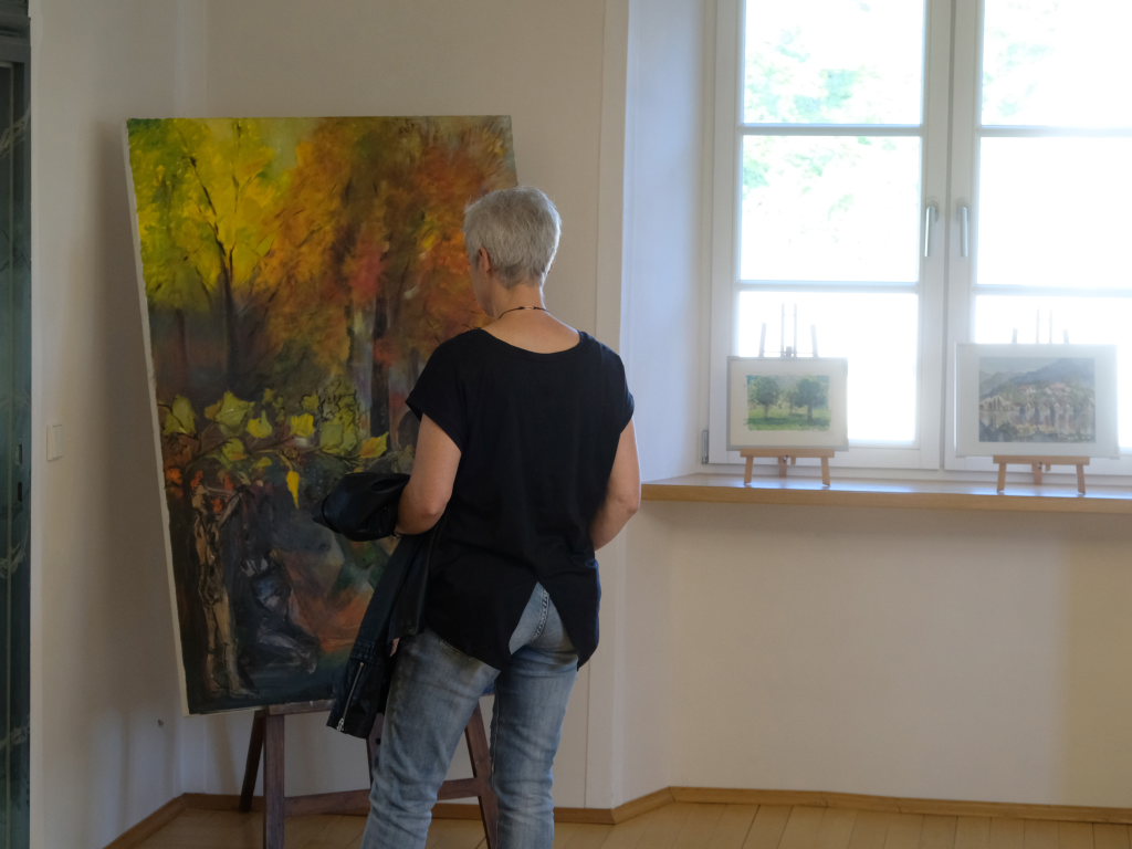 Bei der Vernissage am Freitagabend, 9. Mai, gab die Künstlerin selbst eine Einführung zu der Ausstellung. Silvia Greiner wurde an einem Sonntag im Jahre 1962 geboren. Schon als Kind bei einem Italienurlaub wurde ihr Berufswunsch, später einmal Restauratorin zu werden, geweckt.
