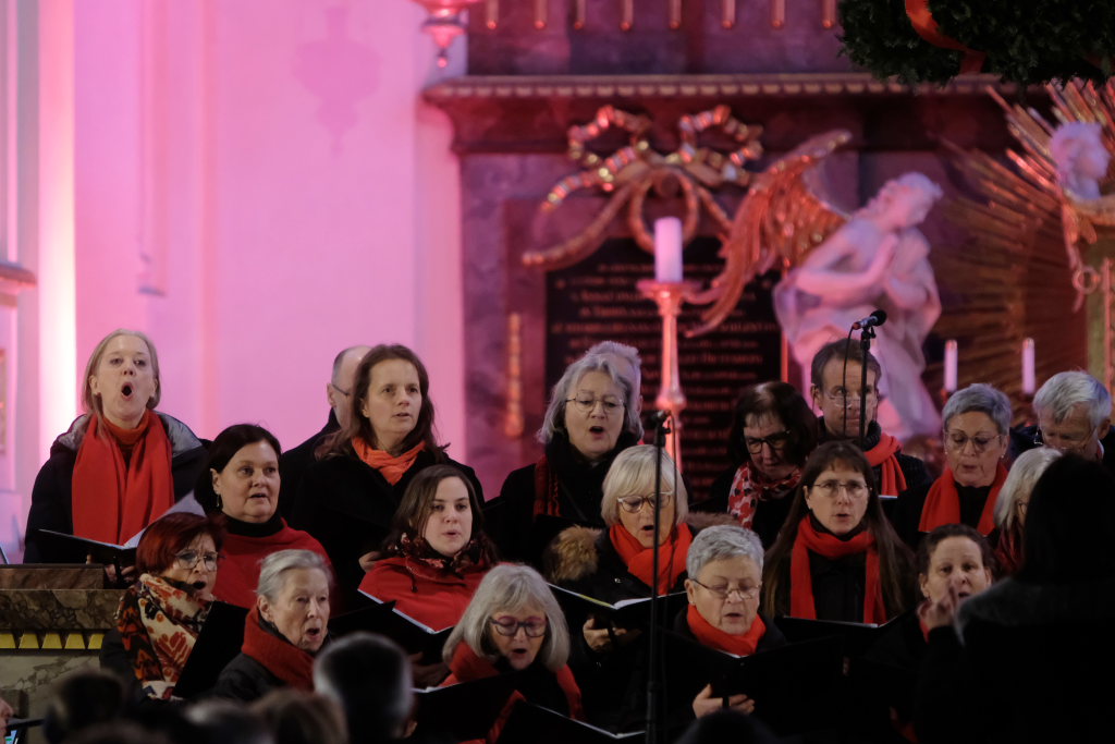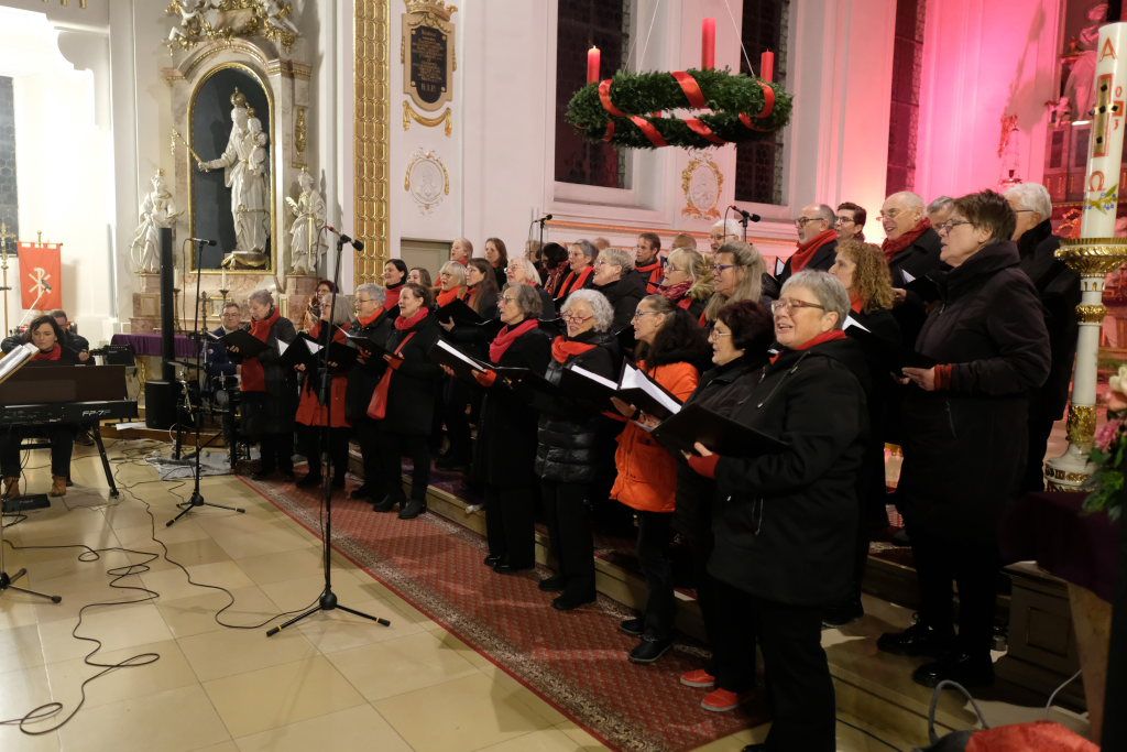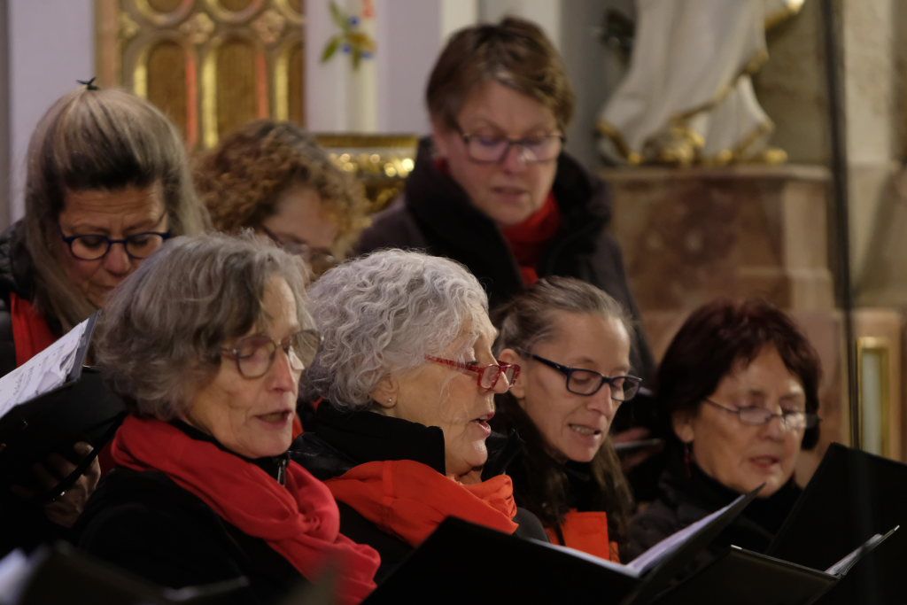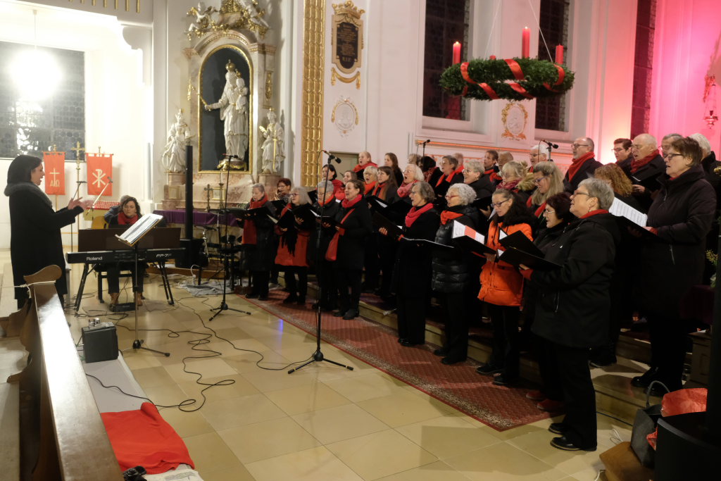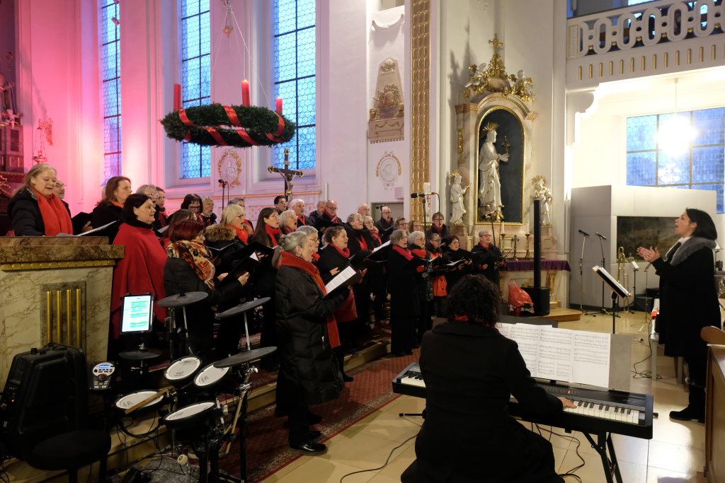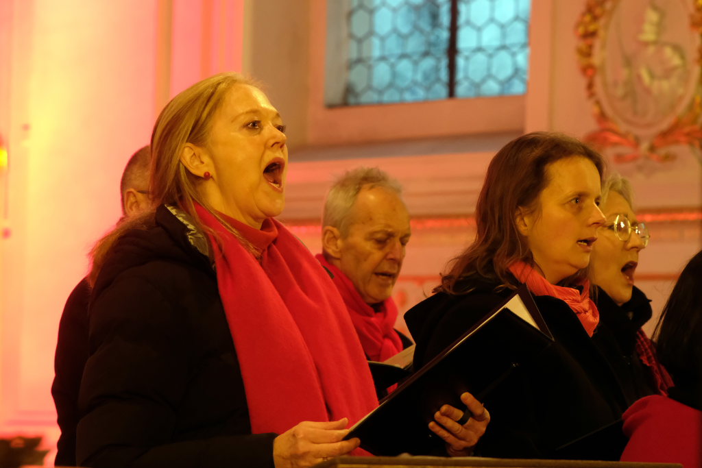 Chorioso eröffnete das Konzert mit dem Lied „Sing ma im Advent“ des österreichischen Komponisten und Poeten Lorenz Maierhofer, gefolgt von „Angels´Carols“ eine „himmlisch“ eingängige Komposition des Engländers John Rutter. Die Melodie des dritten Liedes, das der Chor sang, stammt ursprünglich aus dem Frankreich des 18. Jahrunderts und ist ein Kirchenlied, das Eingang in das Gotteslob (Nr. 250) gefunden hat. Bei „Engel auf den Feldern singen“ konnte man als Zuhörer bei geschlossenen Augen durchaus sich auf die biblischen Felder bei Bethlehem versetzt fühlen.