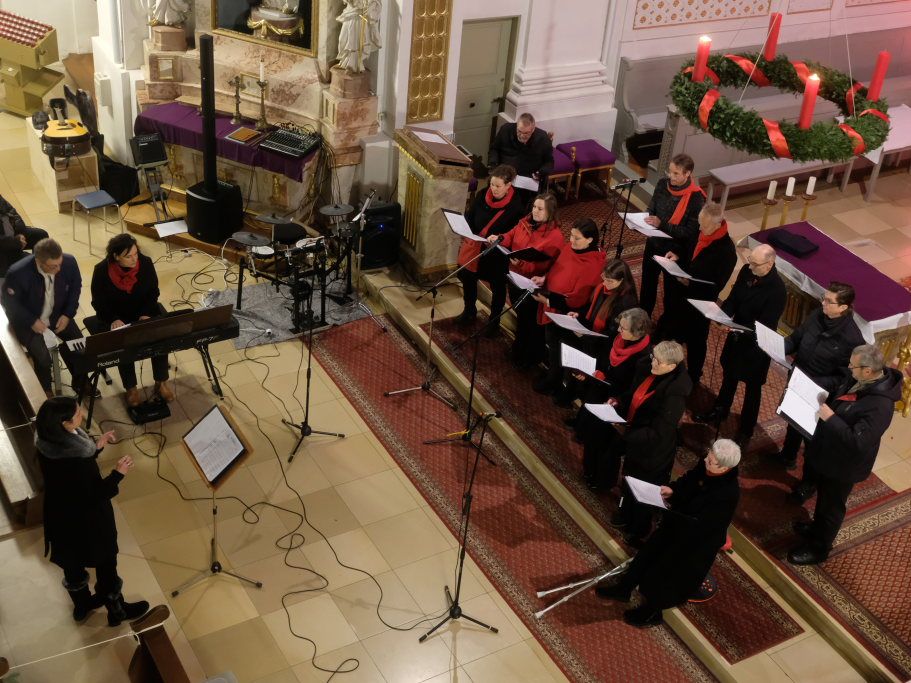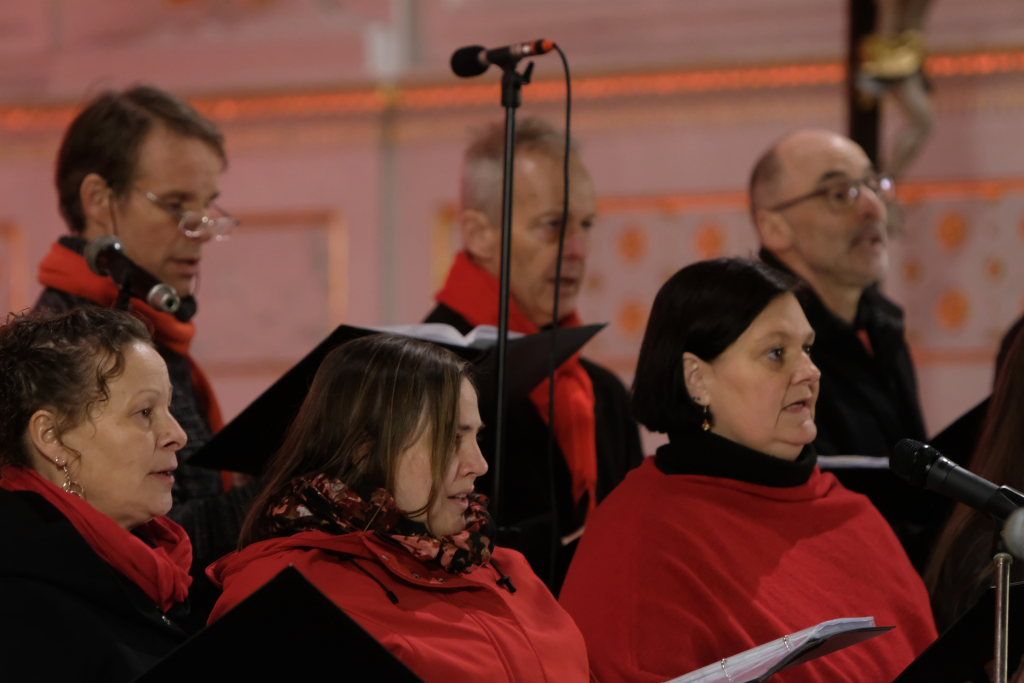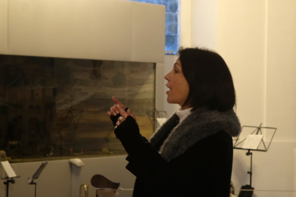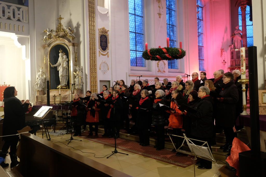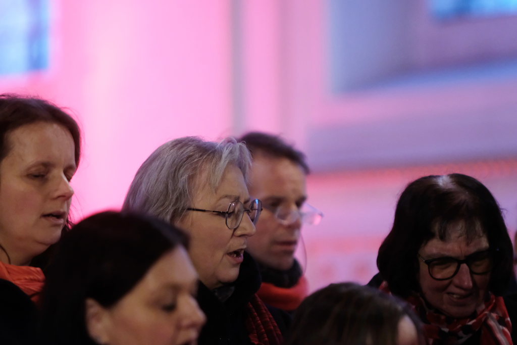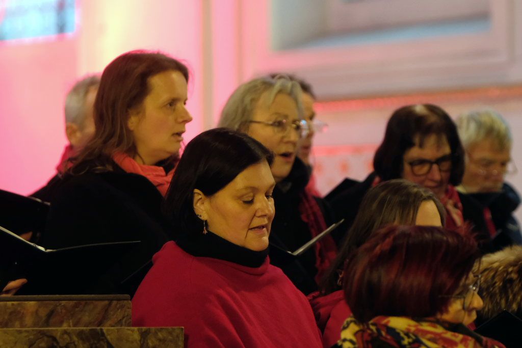 Chorioso eröffnete das Konzert mit dem Lied „Sing ma im Advent“ des österreichischen Komponisten und Poeten Lorenz Maierhofer, gefolgt von „Angels´Carols“ eine „himmlisch“ eingängige Komposition des Engländers John Rutter. Die Melodie des dritten Liedes, das der Chor sang, stammt ursprünglich aus dem Frankreich des 18. Jahrunderts und ist ein Kirchenlied, das Eingang in das Gotteslob (Nr. 250) gefunden hat. Bei „Engel auf den Feldern singen“ konnte man als Zuhörer bei geschlossenen Augen durchaus sich auf die biblischen Felder bei Bethlehem versetzt fühlen.