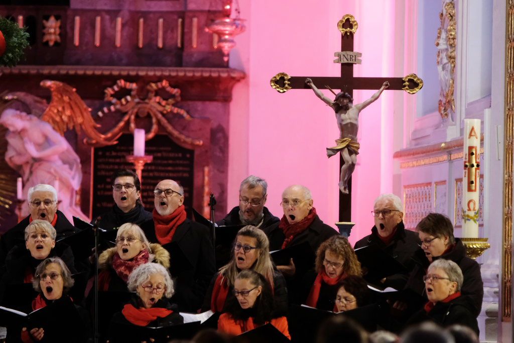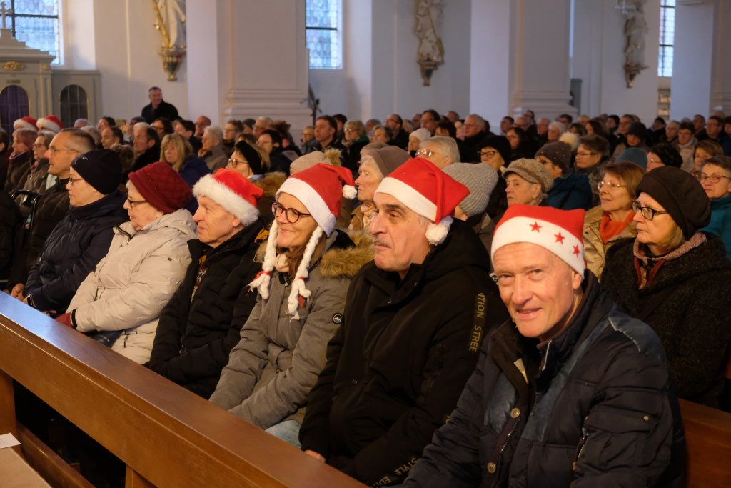 Traditionell beendete der Liederkranz Chorioso das Konzert mit dem Weihnachtsklassiker „O du fröhliche“ gemeinsam mit dem Publikum. Solchermaßen gepusht, verlangte dieses daraufhin nach einer Zugabe. Und bekam sie in Form eines weiteren Weihnachtsliedes aus dem Pop-Genre: „Feliz Navidad“ stammt aus der Feder des puerto-ricanischen Sängers José Feliciano, das dieser 1970 auf seinem Christmas Album veröffentlichte. Doch danach war noch lange nicht Schluss: Im Anschluss an das Konzert lud der Liederkranz die Konzertbesucher ins benachbarte Pius-Scheel-Haus, um mit den Gästen – ebenfalls eine lange Tradition – danach mit Glühwein, Punsch und Weihnachtsgebäck noch ein wenig zu feiern.
