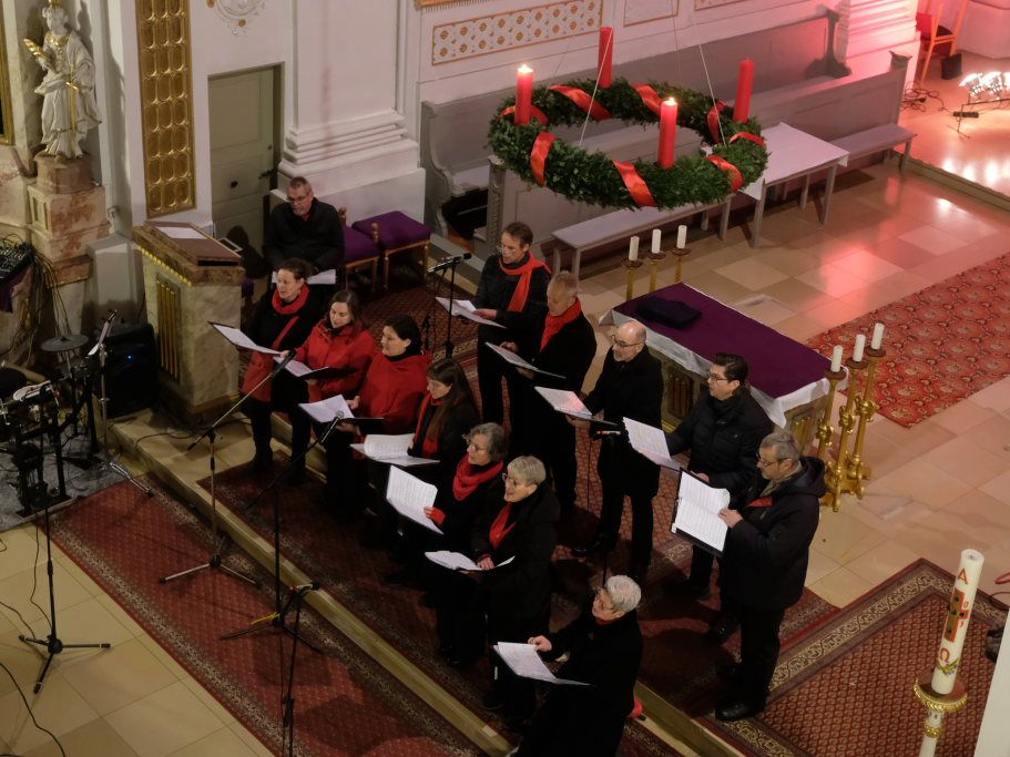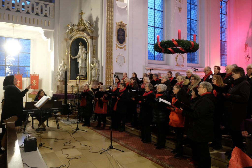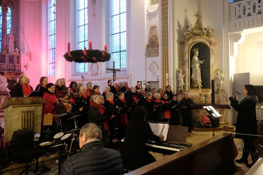 Bad Wurzach – Der Liederkranz Chorioso hatte zum traditionellen adventlichen Singen in die St. Verena Kirche eingeladen und als musikalische Gäste die Christmas-Blowers aus Treherz mitgebracht. Sehr viele waren dieser Einladung gefolgt und wurden mit Weihnachtsliedern aus aller Welt auf die „Stille Zeit“ eingestimmt.