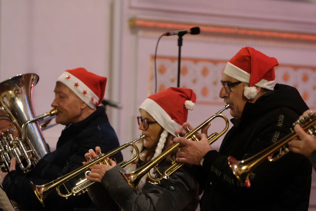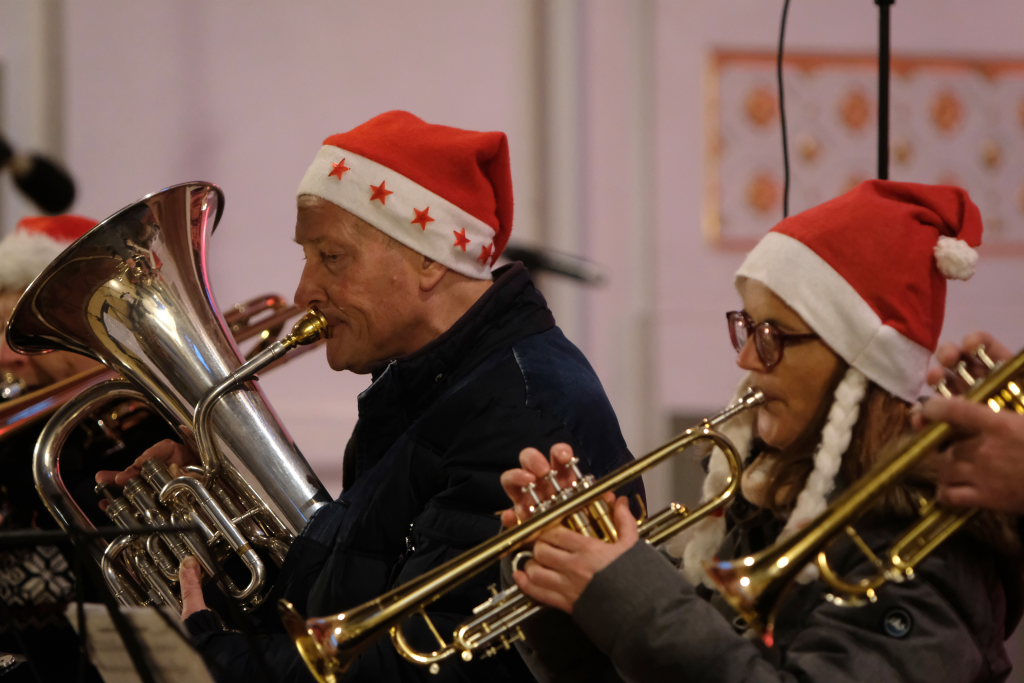 Mit „Oh holy night“ wechselten Chorleiterin Katja Erath und ihr Chor das Genre. Obwohl das Lied von Adolph Adam 1847 zunächst mit einem französischen Text versehen wurde, entstand die heute bekannte Version mit englischem Text erst acht Jahre später. Hierzulande bekannt wurde es vor allem durch die Pop-Größen Mariah Carrey und Celine Dion. Mit dem Lied „Heilige Nacht“ beendete der Chor seinen ersten Konzertteil und machte Platz für die Christmas Blower des Musikvereines Treherz.