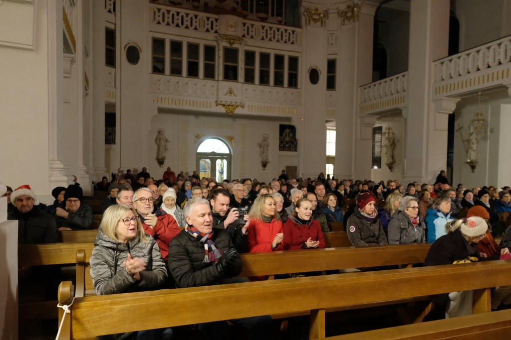 Mit einem Projektchor eröffnete Chorioso seinen zweiten Konzertteil. Dieser sang amerikanische Popweihnachtslieder wie „Do they know it´s Christmas Time?“ oder „All I want for Christmas is you“. Er beendete seinen Programmteil mit „The little drummerboy“, ein Lied, das einst im Jahre 1977 mit Bing Crosby und David Bowie zwei Größen unterschiedlicher Musikergenerationen mit dem Untertitel Peace on Earth bei einem Weihnachts-Spezial vereinte. Ein Lied also, das durch das aktuelle Weltgeschehen wieder enorm an Aktualität gewonnen hat.