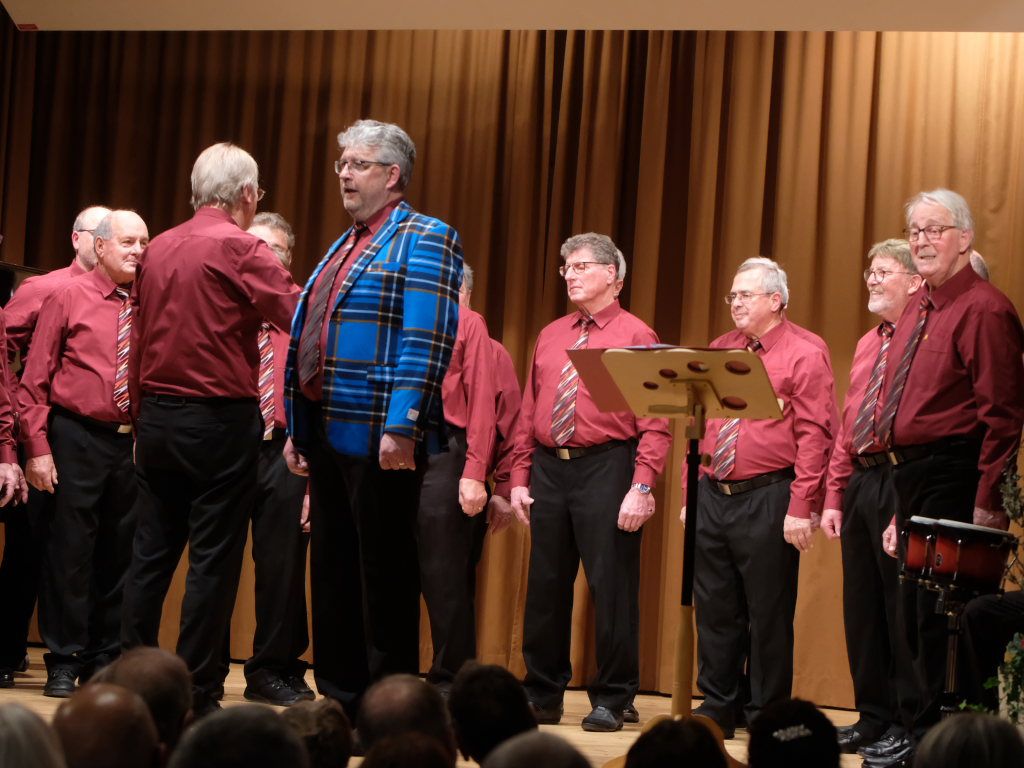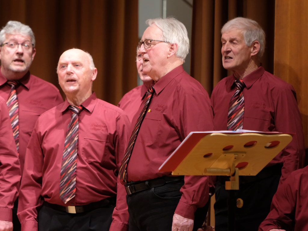 Auch Peter Schad steuerte am Ende des Auftritts einen Witz bei, als Argument dafür, dass der Männerchor außer dem (An)-Werbelied für neue Sänger keine weitere Zugabe gab: „I muaß morga zum Kicka!“ lachte er. „Der einzige Witz, der jedes Jahr besser wird!“