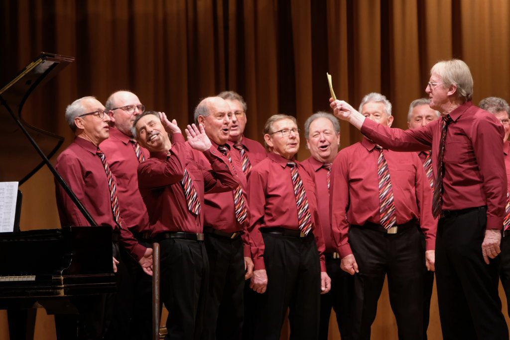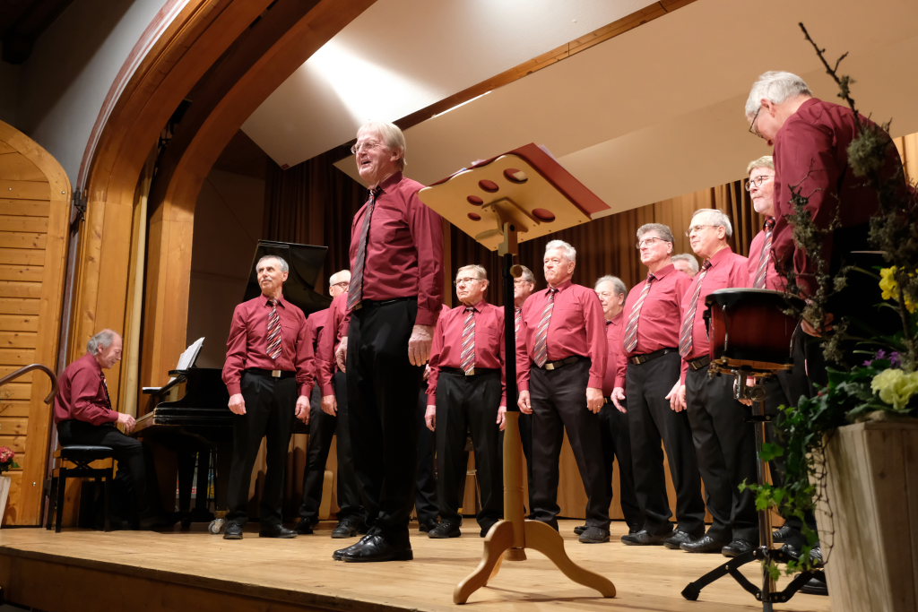 Der Männerchor eröffnete sein Konzertprogramm, bei dem er in bewährter Manier von Franz Ott am Flügel begleitet wurde, mit dem Seemannslied, mit dem Freddy Quinn einst weltberühmt wurde. Mit Liedern wie „Wochenend und Sonnenschein“ von den Comedian Harmonists, „Die kleine Kneipe“ von Peter Alexander, bei dem der ganze Saal fleißig mitsang oder dem Trinklied aus der Puccini-Oper La Traviata boten die Sänger des Männerchores Alttann beste Unterhaltung mit hochwertigem Chorgesang sowie großartigen Solisten. Josef Mattheis, der bei einigen Stücken die Sänger am Cajun begleitete, durfte sich auch als „Schwätzer vom Dienst“ betätigen, er übernahm die Ansagen zwischen den einzelnen Stücken. Und erzählte auch von den Fallstricken solcher Ansagen: „Wie peinlich wäre es, “ erklärte er vor dem Stück Jasmina, das (natürlich) von der Liebe zu einer Frau namens Jasmina erzählt, „wenn ich bei meiner Ansage erzählen würde, die Jasmin ist verblüht…“