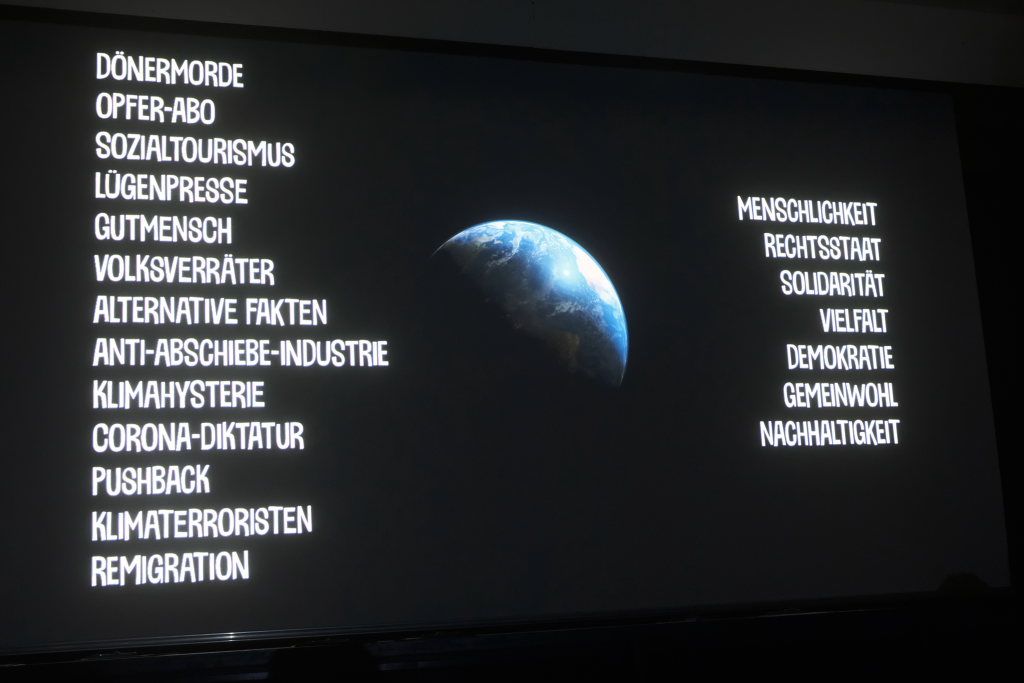 Wir leben in unruhigen Zeiten – mehr und mehr bestimmen Krisen unseren Alltag. In dieser Zeit, in der der Ton auch innerhalb unserer Gesellschaft rauer wird, ist es umso wichtiger, dass wir zusammenhalten und gemeinsam aktiv werden – grad jetzt. Deswegen hat Mauthe zum Abschluss seines Vortrages mit einem Weltraumfoto des „Blauen Planeten“ die (bisherigen) Unwörter des Jahres den menschlichen Werten gegenübergestellt: „Menschlichkeit, Rechtsstaat, Solidarität, Vielfalt, Demokratie, Gemeinwohl und Nachhaltigkeit. „Eine Welt für morgen“ sei ein leidenschaftlicher Appell an uns alle, gemeinsam an einer nachhaltigen Gesellschaft zu bauen, für einen gesunden Planeten und eine faire, lebenswerte Zukunft für alle Menschen!