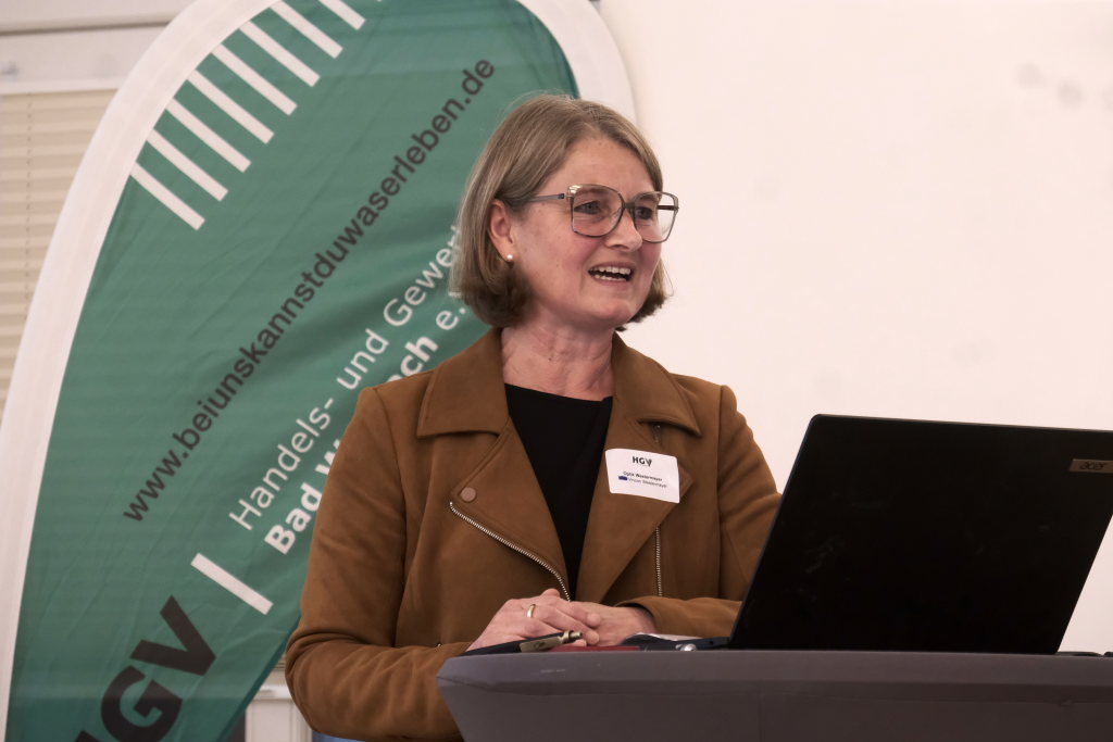 Bürgermeisterin Alexandra Scherer sagte in ihrem Grußwort, nachdem die HGV-Vorsitzende Christiane Vincon-Westermayer die Begrüßung übernommen hatte: „Es kommt sehr selten vor, dass eine Kommune so direkt Fragemöglichkeit an einen Abgeordneten erhält.“ Das vom HGV vorbereitete Thema Bürokratieabbau betreffe Stadtverwaltung und Wirtschaftsvertreter gleichermaßen.