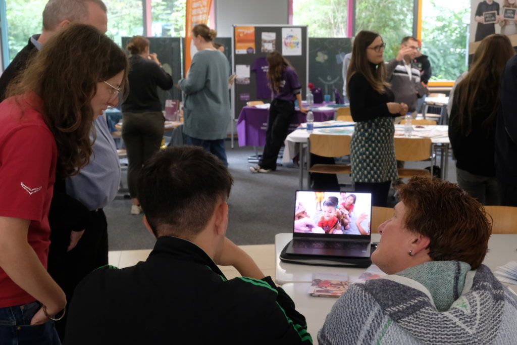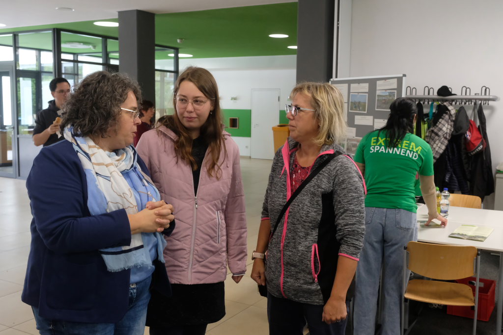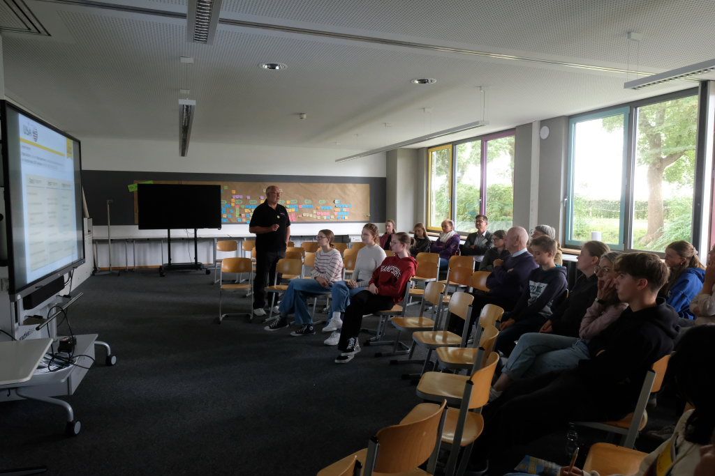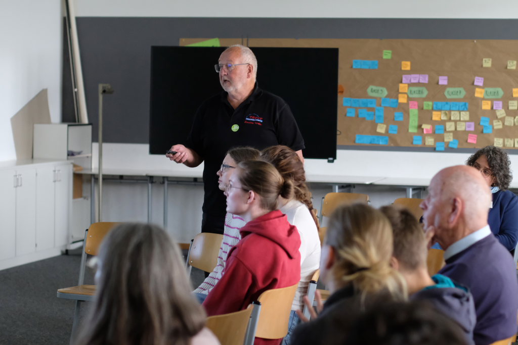 Ergänzt wurden die Beratungen der Anbieter durch zwei Impulsvorträge. Bernd Kürbiss von Treff, ein gelernte Lehrer, hatte sich mit der Vermittlung von Auslandsaufenthalten von Schülern selbstständig gemacht, nachdem er – aus heutiger Sicht unglaublich – nach seinem Lehramtsstudium nicht in den Schuldienst übernommen worden war. Er spezialisierte sich auf Reisen in die USA, nach Australien und Neuseeland. Neben allgemeinen Infos zu den Aufenthalten konnte er sehr detailliert über die Modalitäten und vor allem auch über die Kosten eines solchen Aufenthaltes Auskunft geben. Die Bildungsreferentin des BDKJ Wernau Eva Schmidt wiederum informierte die Schülerinnen und Schüler sowie deren Eltern ausführlich über ein FSJ im Ausland.