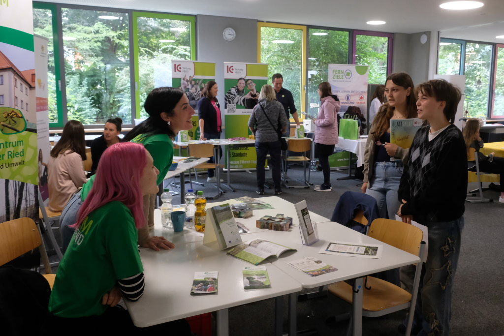 Die Organisatorin der Messe, Christine Braig, freute sich bei diesem Markt der Möglichkeiten, den Schülern „ein so buntes Tableau“ bieten zu können. Dazu waren aus der Region als Anbieter für ein FÖJ/FSJ in der Region gekommen: das Naturschutzzentrum Bad Wurzach, das drei Stellen für ein FÖJ anbieten konnte; das zfp Südwürttemberg hat großen Bedarf an FSJ-Stellen, ebenso wie das KBZO Oberschwaben.