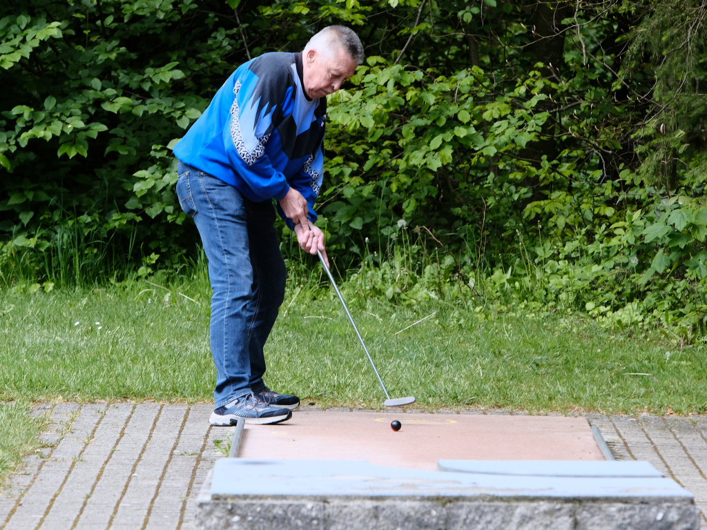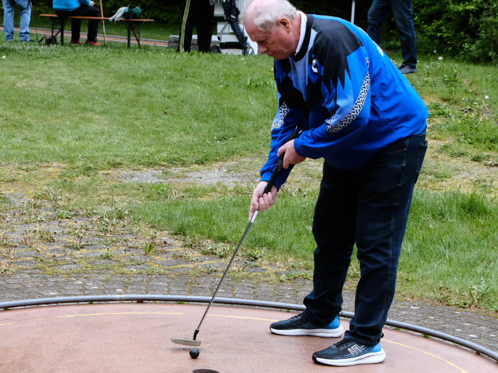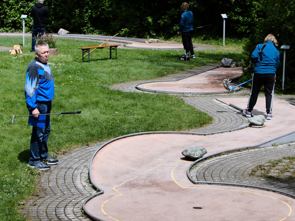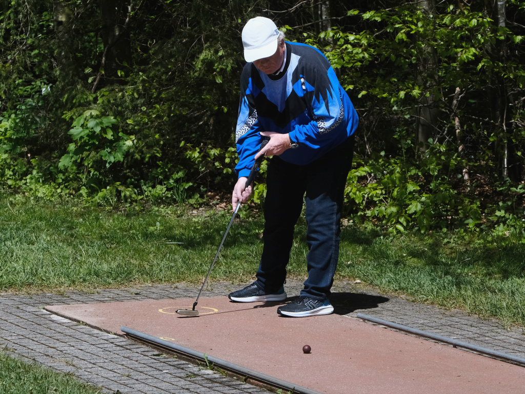 Bad Wurzach – Am ersten Maiwochenende gab es wieder hochklassiges Minigolf auf den Bahnen beim Kurpark zu sehen: Am Sonntag, 5. Mai, trug der Württembergische Bahnengolfsportverband 1969 e.V. zum einen den zweiten von drei Spieltagen der WBV-Seniorenliga 2024 aus, zum anderen kürten die Senioren auf den Bad Wurzacher Betonbahnen ihre Württembergischen Meister. Mit am Start waren – unter der Flagge des MGC Bad Waldsee – auch zwei echte Wurzacher Senioren-Minigolfer. Josef Gut, aus Brugg stammend, und Hans-Peter Gebhart aus Bad Wurzach ließen in der Klasse Senioren II auf ihrer Heimbahn ihr Können aufblitzen.