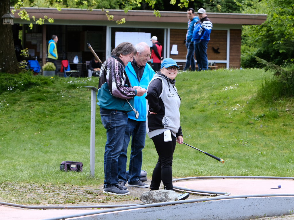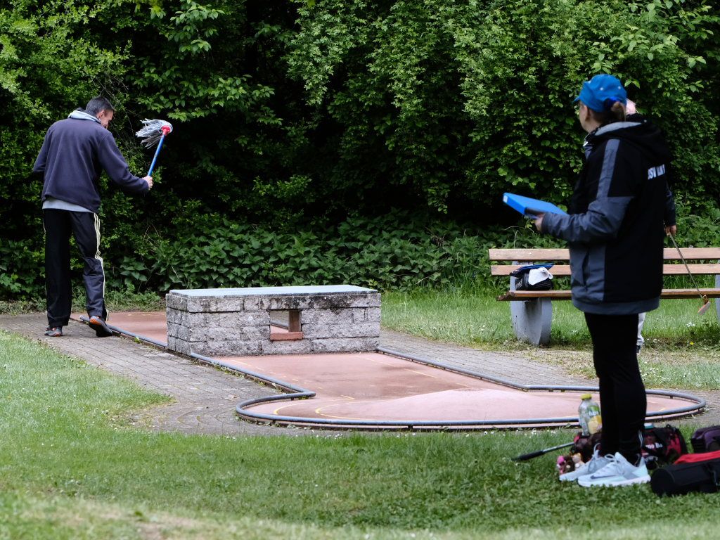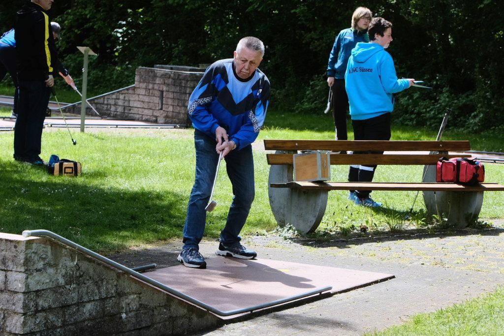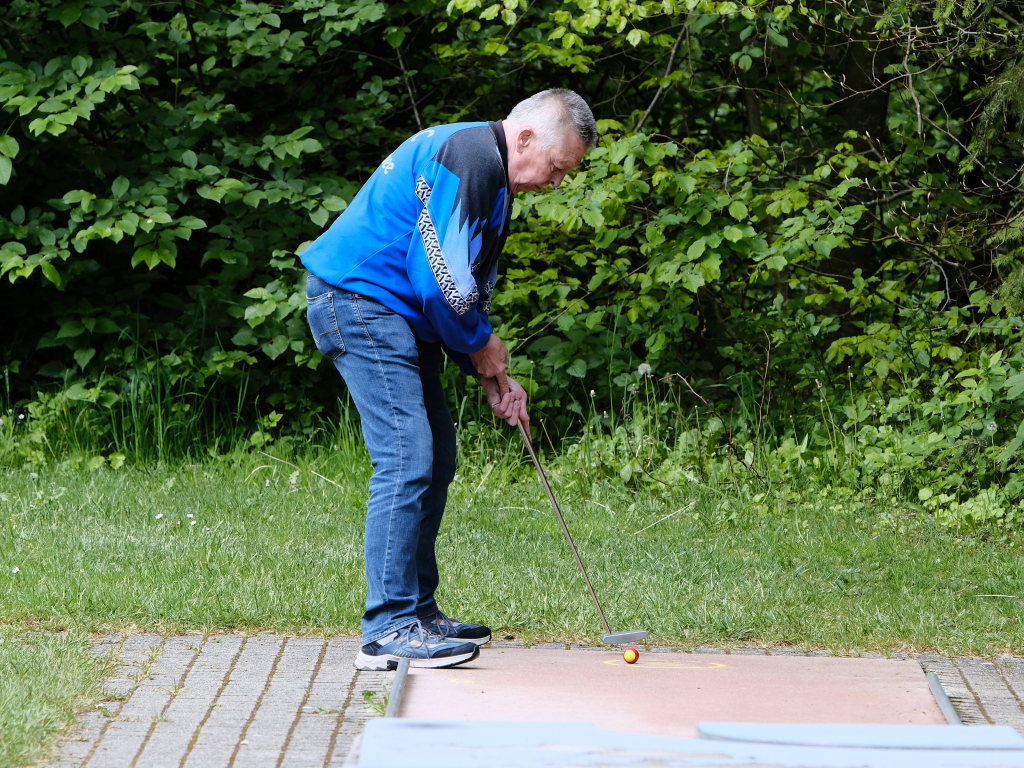 Bad Wurzach – Am ersten Maiwochenende gab es wieder hochklassiges Minigolf auf den Bahnen beim Kurpark zu sehen: Am Sonntag, 5. Mai, trug der Württembergische Bahnengolfsportverband 1969 e.V. zum einen den zweiten von drei Spieltagen der WBV-Seniorenliga 2024 aus, zum anderen kürten die Senioren auf den Bad Wurzacher Betonbahnen ihre Württembergischen Meister. Mit am Start waren – unter der Flagge des MGC Bad Waldsee – auch zwei echte Wurzacher Senioren-Minigolfer. Josef Gut, aus Brugg stammend, und Hans-Peter Gebhart aus Bad Wurzach ließen in der Klasse Senioren II auf ihrer Heimbahn ihr Können aufblitzen.