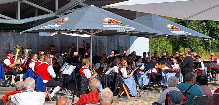 Bad Wurzach – Eine schöne Tradition in Bad Wurzach sind die sonntäglichen Kurkonzerte. Aus den Orten der Gemeinde spielen abwechselnd die Musikkapellen auf. Am vergangenen Sonntag (4.8.) war die Musikkapelle Hauerz dran. Der Teilort hat rund 1100 Einwohner und stellte ein Blasorchester von 50 Mitgliedern auf die Bühne der Konzertmuschel am Rand des Kurparks. Zahlreiche Zuhörer und Zuhörerinnen schätzen die Musik und die innige Beziehung des Zentralorts zu den Teilgemeinden Bad Wurzachs. So wird das geistig-kulturelle Brauchtum hochgehalten.