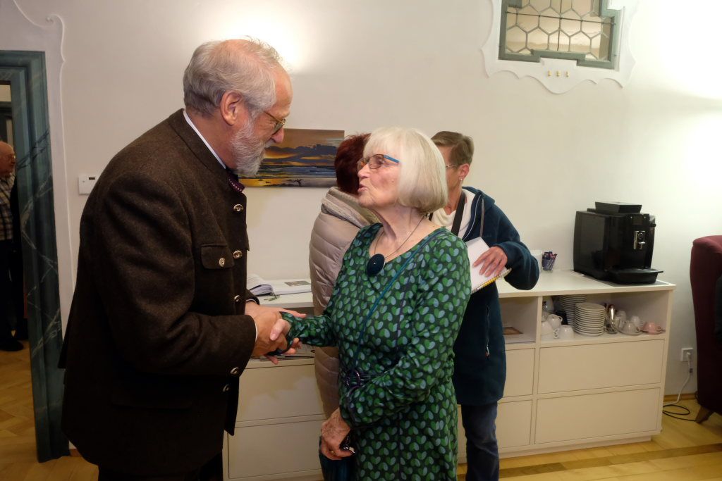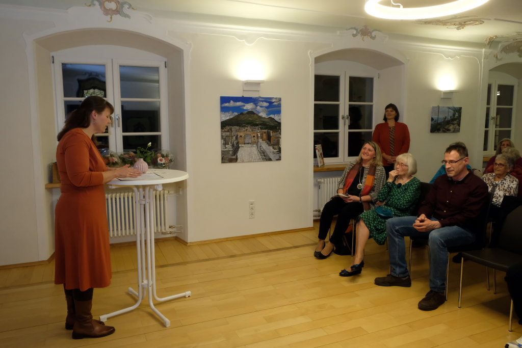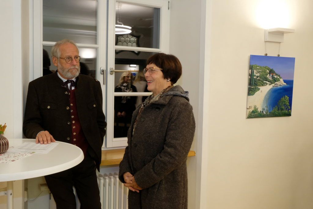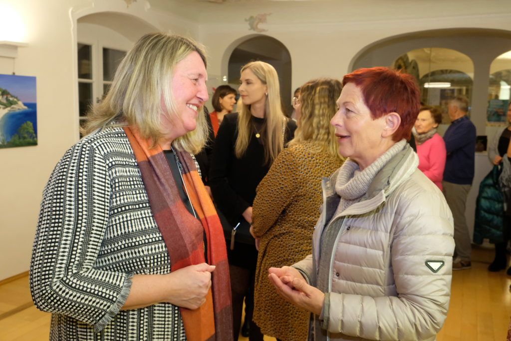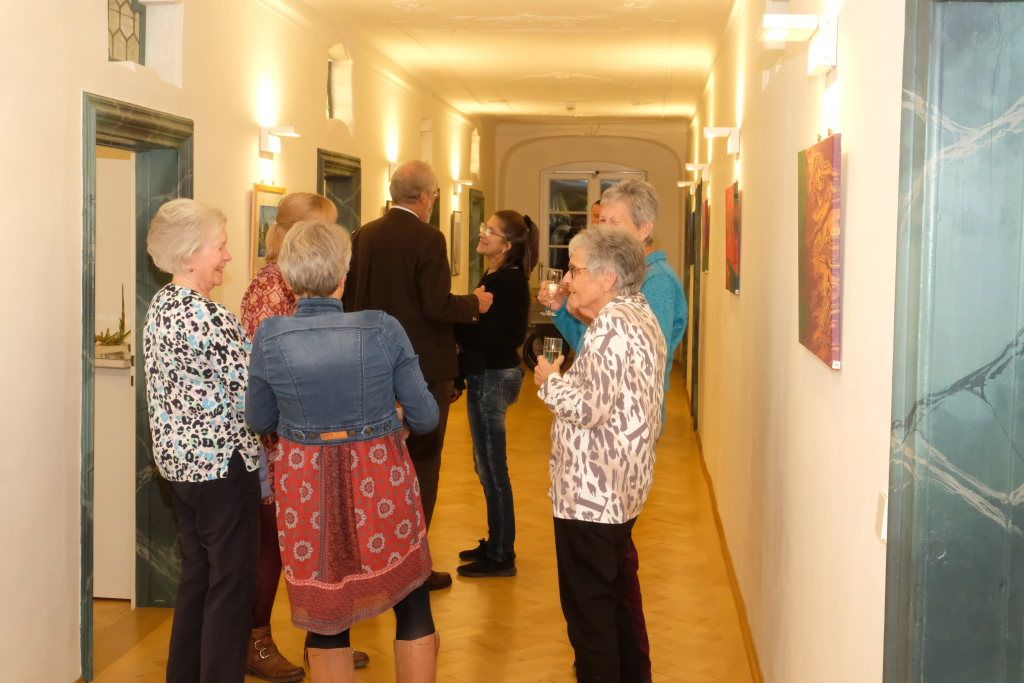 Die Bürgermeisterin sagte in ihrer Laudatio auf Stäbler, es sei ihr bei den 150 Ausstellungen, die sie mit viel Herzblut im Ehrenamt organisiert hatte, darum gegangen, jungen talentierten Künstlern ein Forum zu bieten. Ihrem Engagement sei es auch zu verdanken gewesen, dass die Galerie nun im Kapitelsaal ausstellen könne. „Sie haben große Spuren hinterlassen!“ Hinter der Organisation einer Ausstellung stecke viel Arbeit: Künstlerbesuche, um das Jahresprogramm für die Ausstellungen festzulegen, Werbung und schließlich Mithilfe beim Hängen der Bilder.