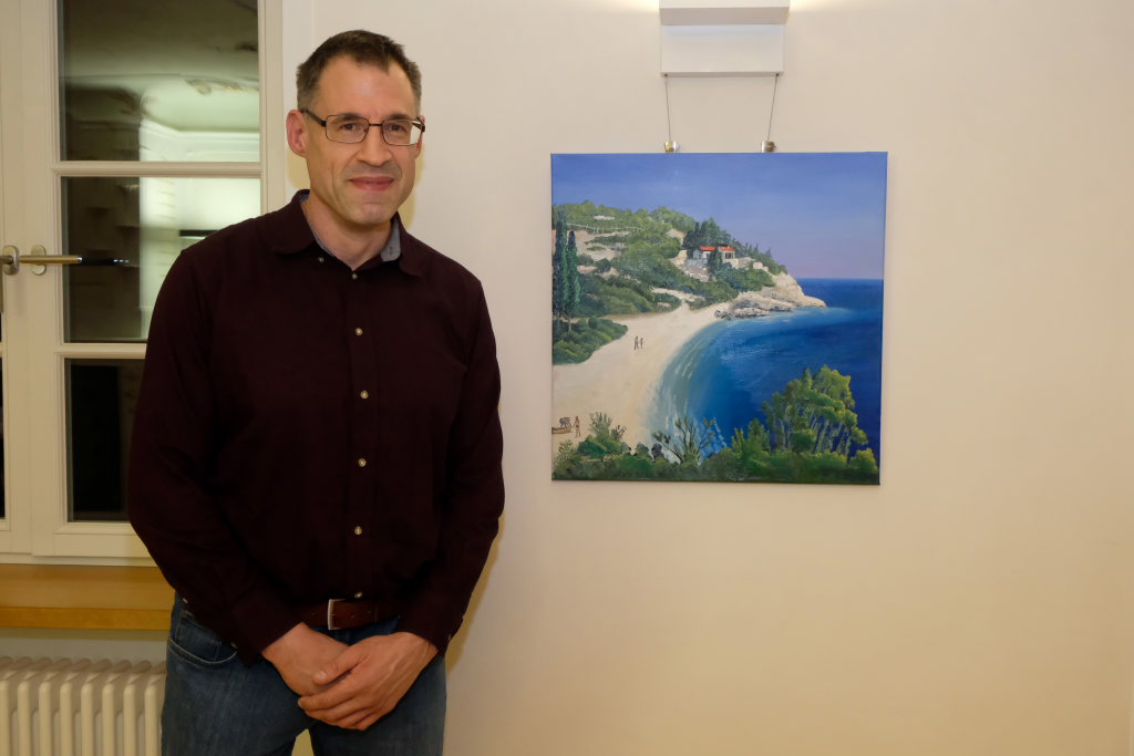 Damals entstand auch das Bild „Der Hafen von Rovinj“, das ebenfalls in der Ausstellung zu sehen ist. Heute fertigt er seine Skizzen mit der Kamera, um dann zu Hause aus mehreren Bildern ein Gemälde anzufertigen. Als vielseitiger Künstler war ihm die Ölmalerei bald zu wenig und so entstanden auch Werke in Acryl, Aquarelle und mit Pastellstiften Angefertigtes. Auch in seiner Motivauswahl wurde seine Palette immer breiter, in Fließtechnik bis hin zu Abstraktion. Auch davon sind einige Beispiele in der Ausstellung zu sehen.