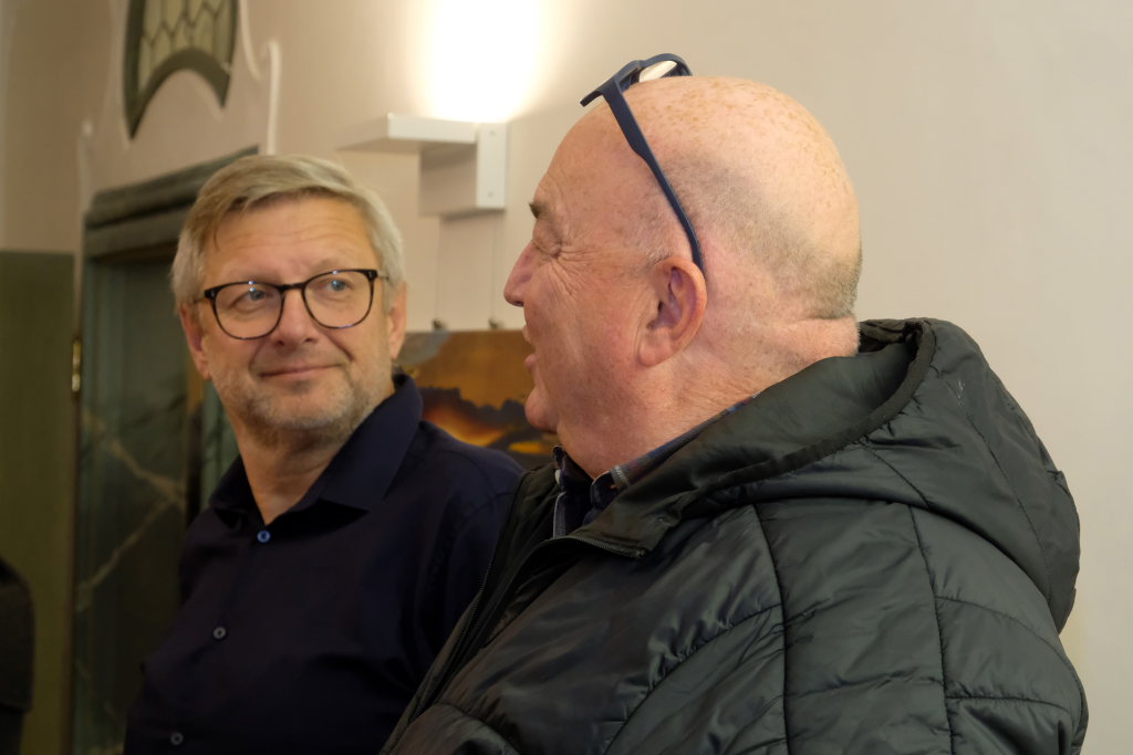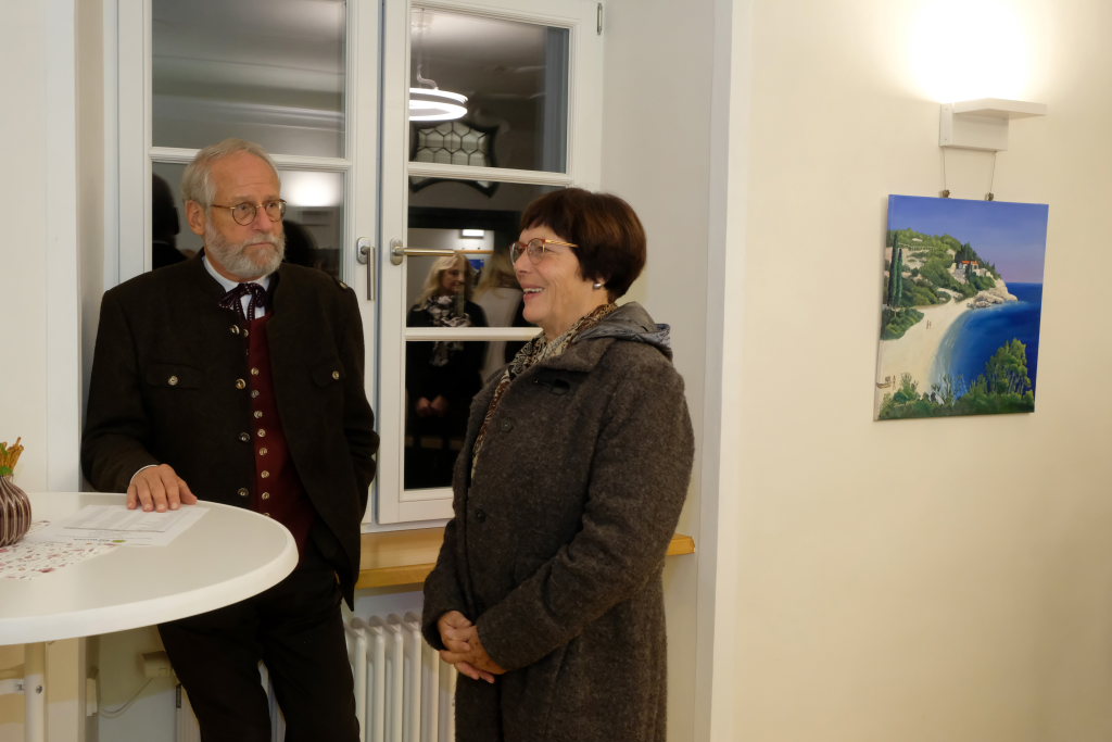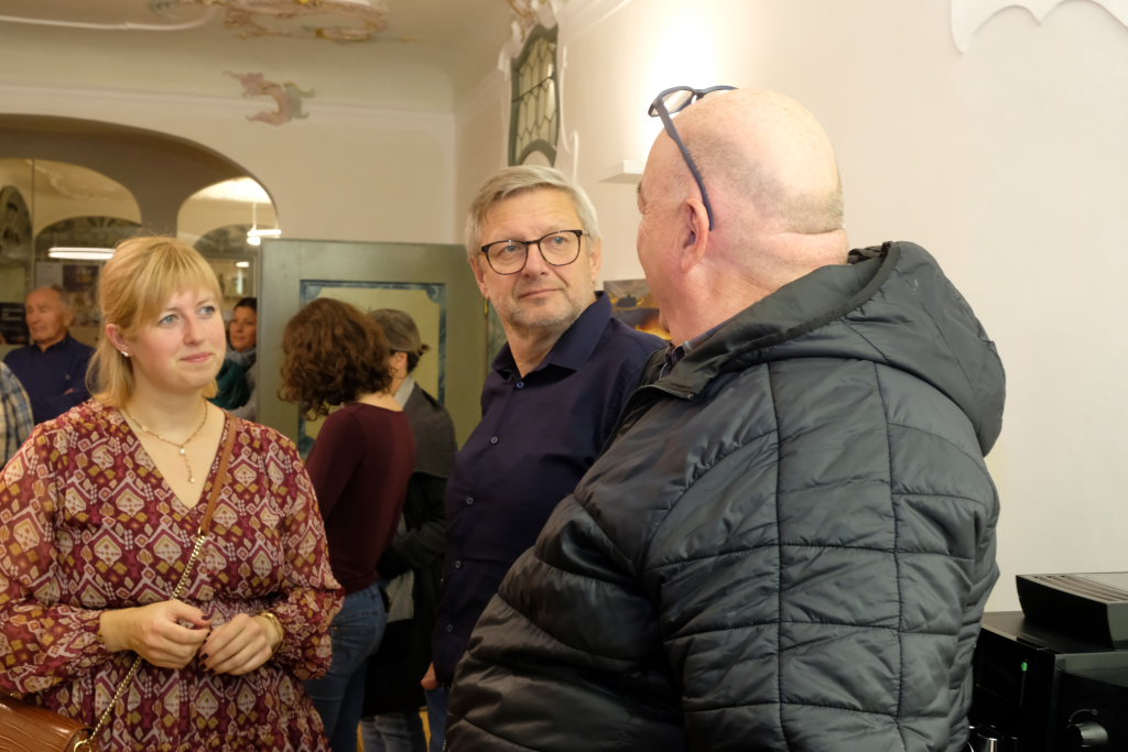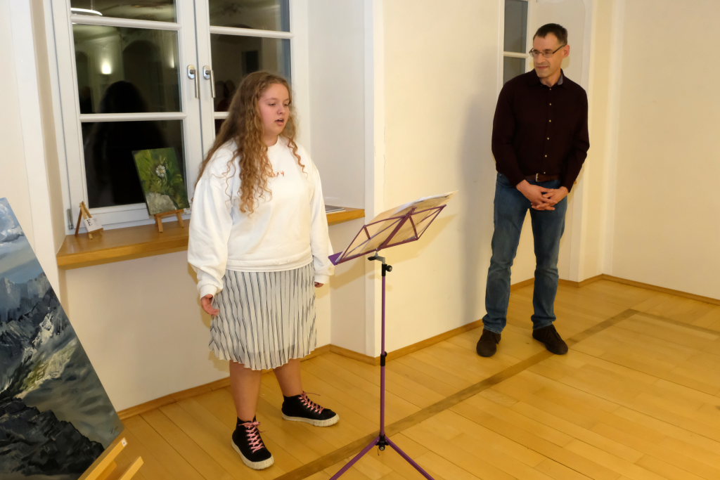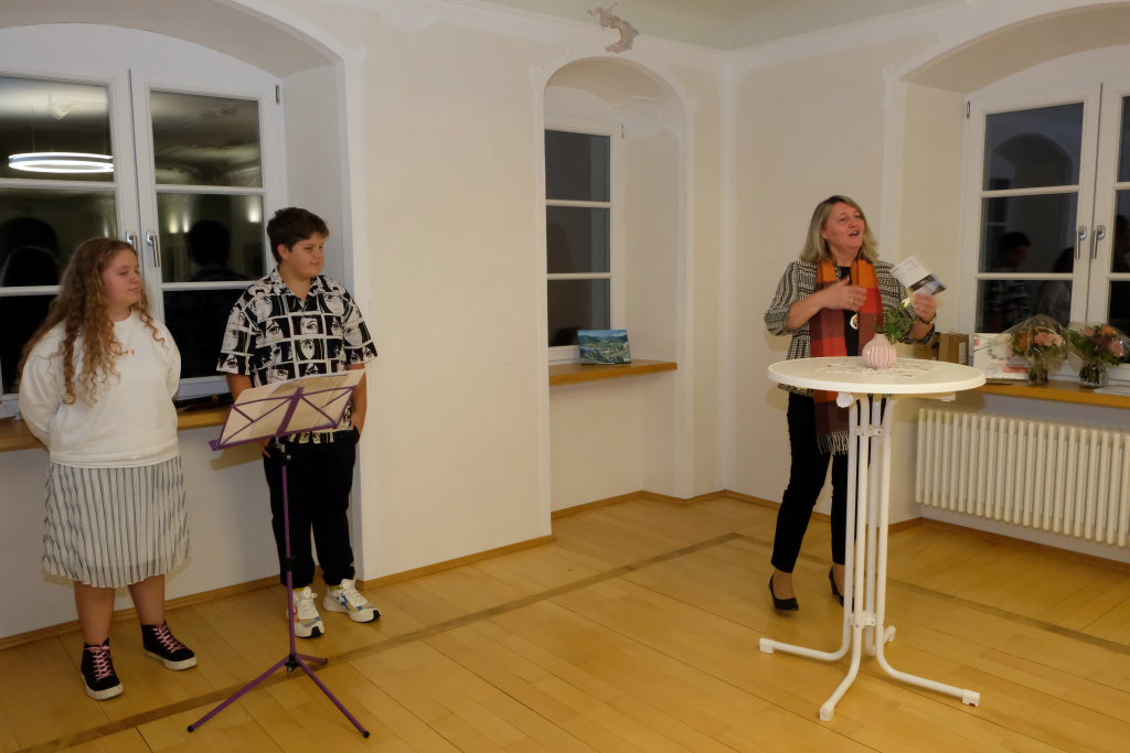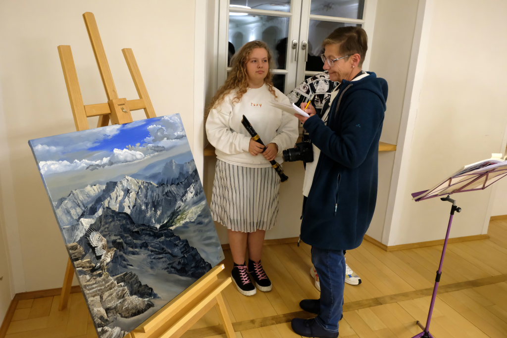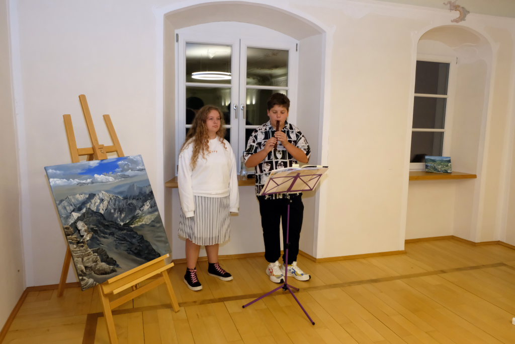 Der Künstler, Grafiker und Mediengestalter Florian Eberharter präsentiert mit 30 Arbeiten in Öl, Acryl und Aquarell bis 15. Dezember seinen künstlerischen Lebensweg. Bei der Vernissage am Freitagabend im Kapitelsaal der Stadtbücherei sorgten sein Neffe John (Flöte) und seine Nichte Isabella Schneppe (Gesang) für die musikalische Umrahmung. Ehefrau Christiane Eberharter führte mit einer kurzen Laudatio in die Ausstellung ein.