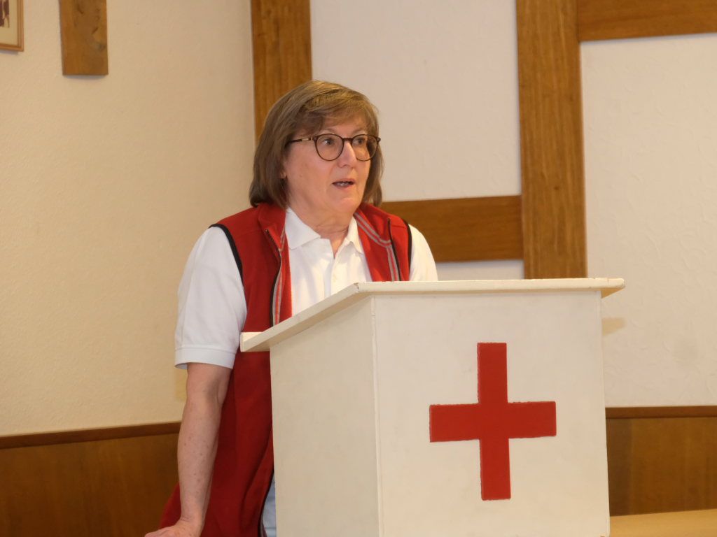 Petra Greiner eröffnete ihren Bericht mit einem Zitat von Clemens Theodor Perthes: „Gott hat uns Hände gegeben, nicht um sie über dem Kopf zusammenzuschlagen, sondern um mit ihnen Gutes zu tun.“ Genau das hätten die Kameradinnen und Kameraden im vergangenen Jahr getan. „Im Zeichen der Menschlichkeit setzen wir uns für das Leben, die Gesundheit, das Wohlergehen, den Schutz, das friedliche Zusammenleben und die Würde aller Menschen ein. “ Es gebe aber auch Themen, die uns als Gesellschaft zutiefst erschütterten. Und die außer Mitgefühl auch das Handeln aller verlangten. „Eines dieser Themen ist die immer brutaler werdende Zeit, in der wir heute leben.“ Besorgt zeigte sie sich darüber, dass immer häufiger auch Helfer Ziele von Angriffen werden. Diese Angriffe seien gegen alle Werte unserer Gesellschaft gerichtet: Menschlichkeit, Mitgefühl, Solidarität. Auch deswegen sei das große Zusammengehörigkeitsgefühl der DRK-Mitglieder sehr wichtig, weshalb über die Übungsabende hinaus auch viele gesellige Termine in den Berichten vorkämen. Ein Ausflug zum THW in Augsburg, Grillfest, Kässpätzleessen, Maiwanderung oder die monatlichen Henry-Treffs: „Das alles sind Teile, die unsere Kameradschaft eng zusammenschweißen und dann die Vielzahl der Aufgaben in unserem Verein besser bewältigen lassen.“ Dann ging sie in ihrem Jahresbericht auch auf die Mitgliederzahlen und -Struktur ein: Der Ortsverband zählt aktuell 144 Mitglieder (80 weibliche und 64 Männer), es seien neue Mitglieder dazu gekommen. Das Alter der Mitglieder liege zwischen acht und 86 Jahren. Ein besonderes Highlight ist alljährlich das JRK-Zeltlager, das in diesem Jahr sein 50jähriges feierte.