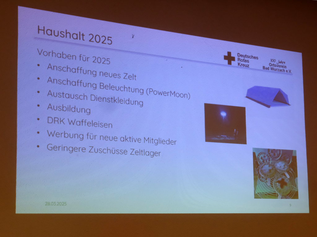 Für die verhinderte Kassiererin Julia Pätzold trug Julian Wetzel den Kassenbericht vor. Die Kasse des Ortsverbandes schloss im Jahre 2024 im Rahmen der Einnahmen-Ausgabenrechnung mit einem leichten Plus ab. Als Kassier des JRK trug Wetzel auch den Kassenbericht des JRK vor, der am Ende des Jahres ebenfalls mit einem leichten Gewinn abschloss. Die Verabschiedung des von Pätzold erstellten Haushaltplans – sieht für 2025 einen Überschuss von einigen hundert Euro vor – wurde einstimmig von den Mitgliedern vorgenommen. Kassenprüfer Edwin Krattenmacher, sagte in seinem Bericht: „Es macht Freude, eine so gut geführte Kasse zu prüfen.“