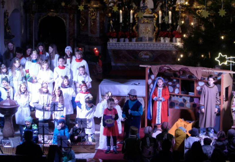 Arnach – Am Nachmittag von Heiligabend fand in der Pfarrkirche St. Ulrich und Margaretha Arnach wieder das tradionelle Krippenspiel statt. Die Kinder aus dem Kindergarten und der Grundschule Arnach führten unter der Leitung von André Radke die Weihnachtsgeschichte aus Sicht eines kleinen Mädchens namens Julia auf. Die kleinen Schauspieler und auch die Kinder aus dem Engelschor und aus der Orchestergruppe konnten sich über einen sehr guten Besuch in der weihnachtlich dekorierten Kirche freuen.