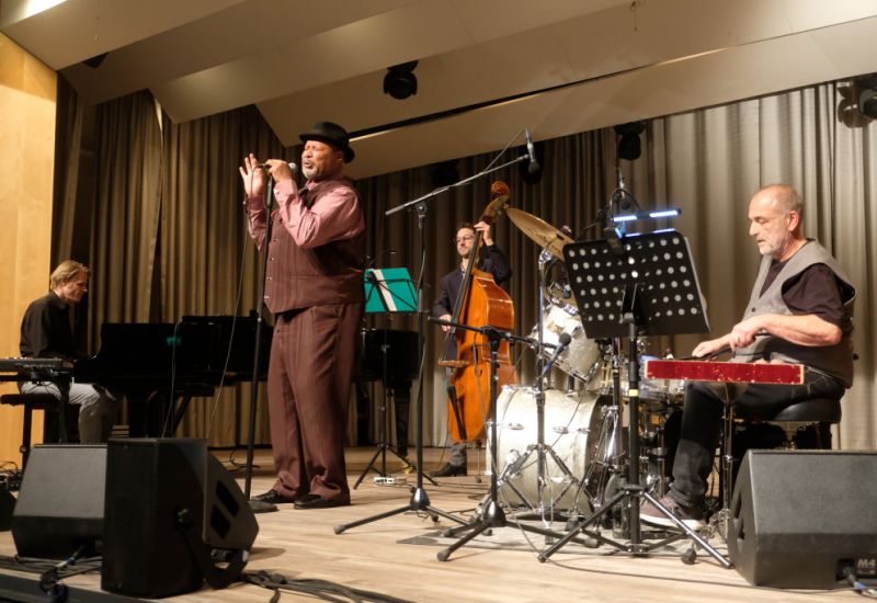 Bad Wurzach – Gemeinsam mit dem Michael Porter Trio tritt Ray Brown Jr. in vielen Städten mit der „Tribute to Ella Fitzgerald-Tour“ auf. Und dank Michael Porter, Schlagzeug-Lehrer an der Bad Wurzacher Jugendmusikschule, gab er nun auch im Kursaal der Kurhaus Kulturschmiede ein Benefiz-Konzert zugunsten von ukrainischen Kindern.