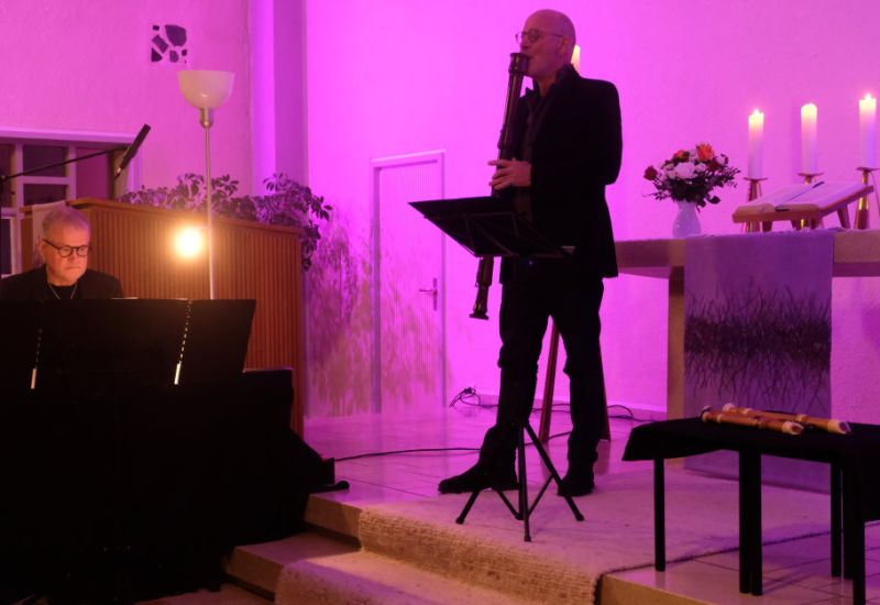 Bad Wurzach – Die Zuhörer, die in der evangelischen Kirche in Bad Wurzach der Musik von Hans-Jürgen Hufeisen (diverse Block-Flöten) und Oskar Göpfert (Klavier) lauschten, bekamen nicht nur wunderbar entspannende Musik geboten, nein, Hufeisen überraschte sie auch mit einer wunderbar tiefgründigen Weihnachtsgeschichte.