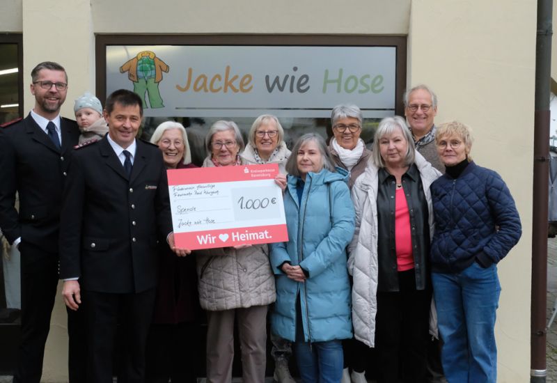 Bad Wurzach – Der Förderverein der Freiwilligen Feuerwehr Bad Wurzach erhielt am gestrigen Donnerstag (21.11.) vom Team des Non-Profit-Second-Hand-Kleiderladens „Jacke wie Hose“ der Diakonie Allgäu-Oberschwaben-Bodensee im Breiteweg einen Scheck in Höhe von 1000 €.