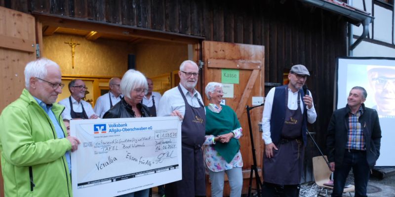 Bad Wurzach – Im Rahmen des „Brot und Wein“-Events beim Torfmuseum konnte die Aktion „Essen für alle“ wieder einen Scheck an die Bad Wurzacher Tafel überreichen, den diese sehr gut gebrauchen kann.