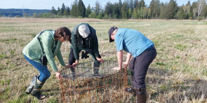 Bad Wurzach – Das Naturschutzzentrum Wurzacher Ried hat in den vergangenen Tagen auf den Feuchtwiesen und Äckern rund um das Wurzacher Ried sechs Gelege von brütenden Kiebitzpaaren mit speziellen Körben gesichert. Ziel dieser Maßnahme ist, die Brut des vom Aussterben bedrohten Wiesenvogels vor Fressfeinden zu schützen und damit die Bestände zu sichern.