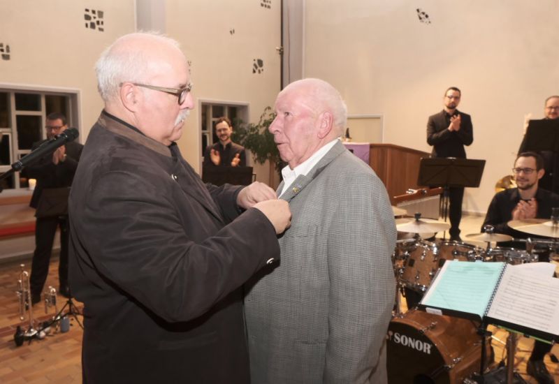 Als Stefanie Jöchle, die Vorstandssprecherin des MV Arnach, den zu Ehrenden zum Rednerpult rief, erhoben sich alle, um dem Jubilar stehende Ovationen zu entbieten.