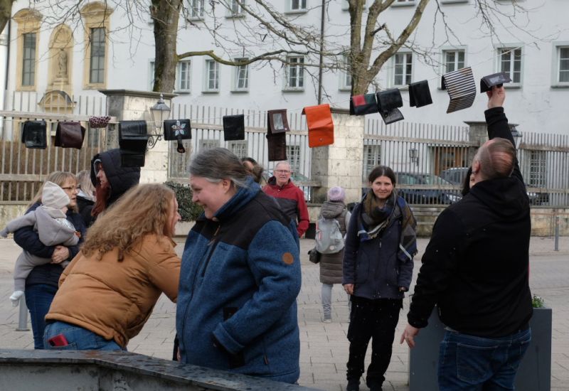 Bad Wurzach – Wie immer am Aschermittwoch um 11.11 Uhr trafen sich auch dieses Jahr wieder Mitglieder Riedmeckelerzunft Bad Wurzach am Stadtbrunnen zur traditionellen „Geldbeutelwäsche“. Um dort mit warmen Wasser aus Plastikeimern – der Stadtbrunnen war noch trockengelegt – ihre vom vielen Feiern leeren Geldbeutel zu reinigen. Damit soll – einer alten Mär zufolge – frisches Geld für die am 11.11. beginnende Saison 2024/25 in den Beutel zurückgespült werden.