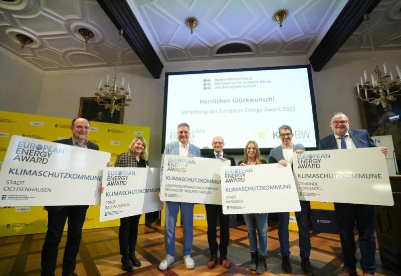 Bad Wurzach – Insgesamt 35 Kommunen und Landkreise aus Baden-Württemberg wurden am 21. Februar mit dem European Energy Award ausgezeichnet – darunter Bad Wurzach. Staatssekretär Dr. Andre Baumann überreichte die Auszeichnung an Bürgermeisterin Alexandra Scherer und Lutz Schmithausen, den neuen Energie- und Klimaschutzmanager der Stadt Bad Wurzach, im Rahmen einer würdevollen Preisverleihung in Freiburg.