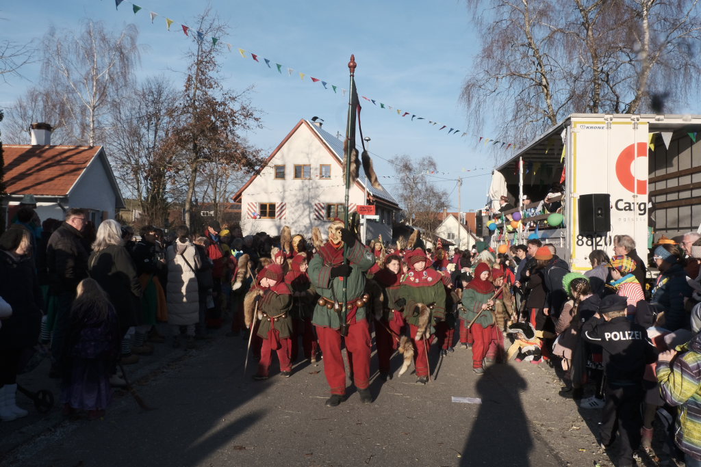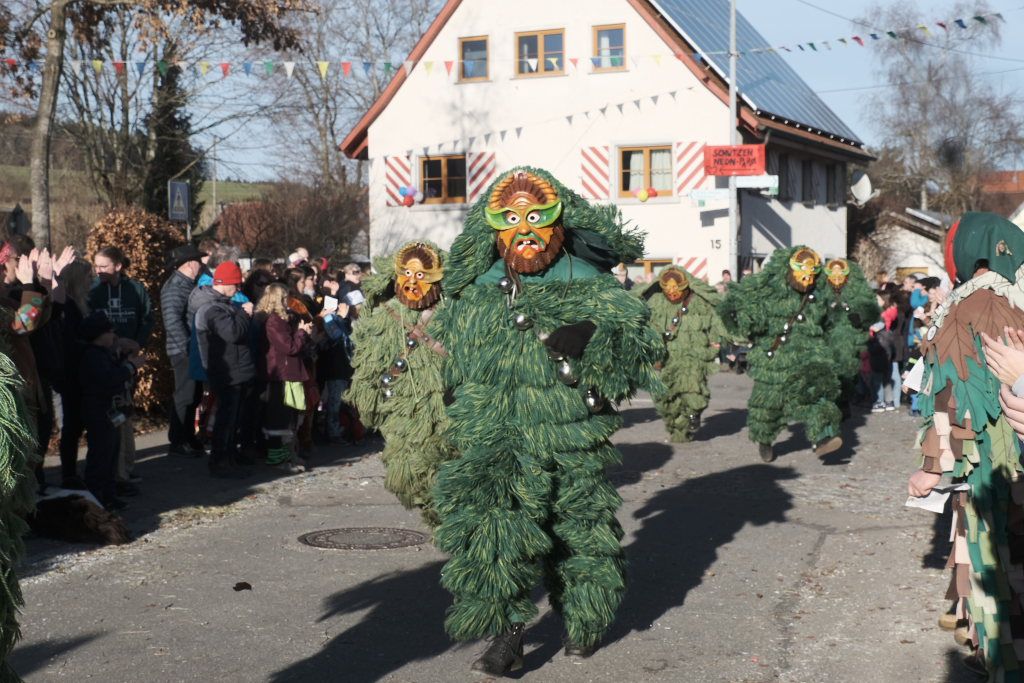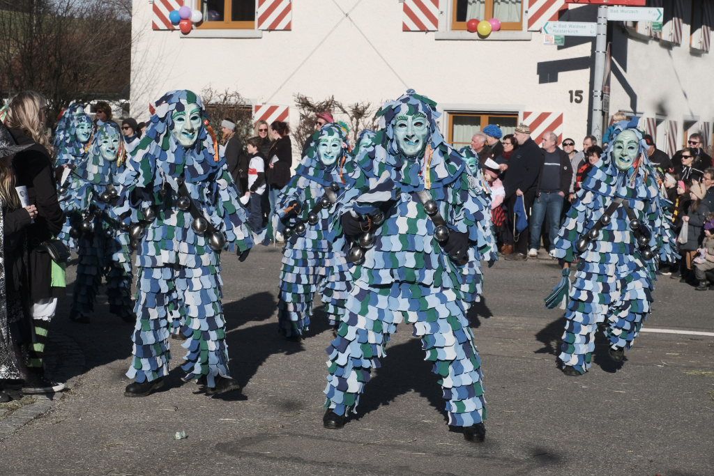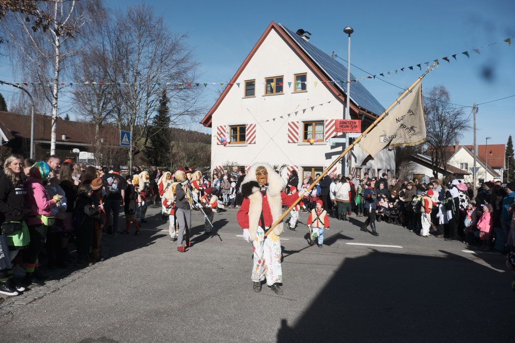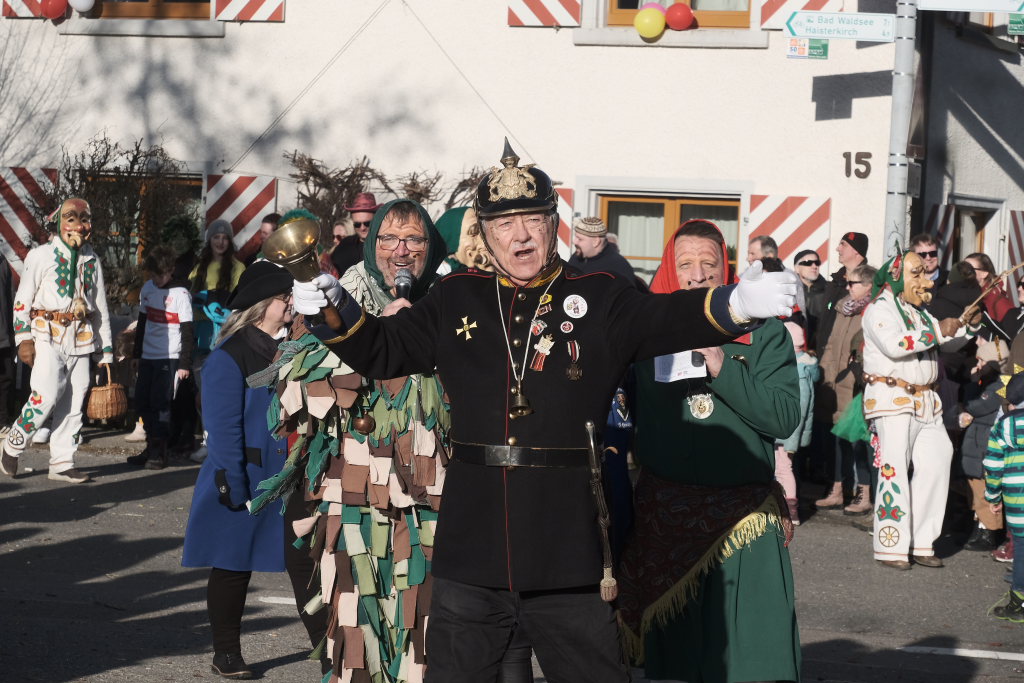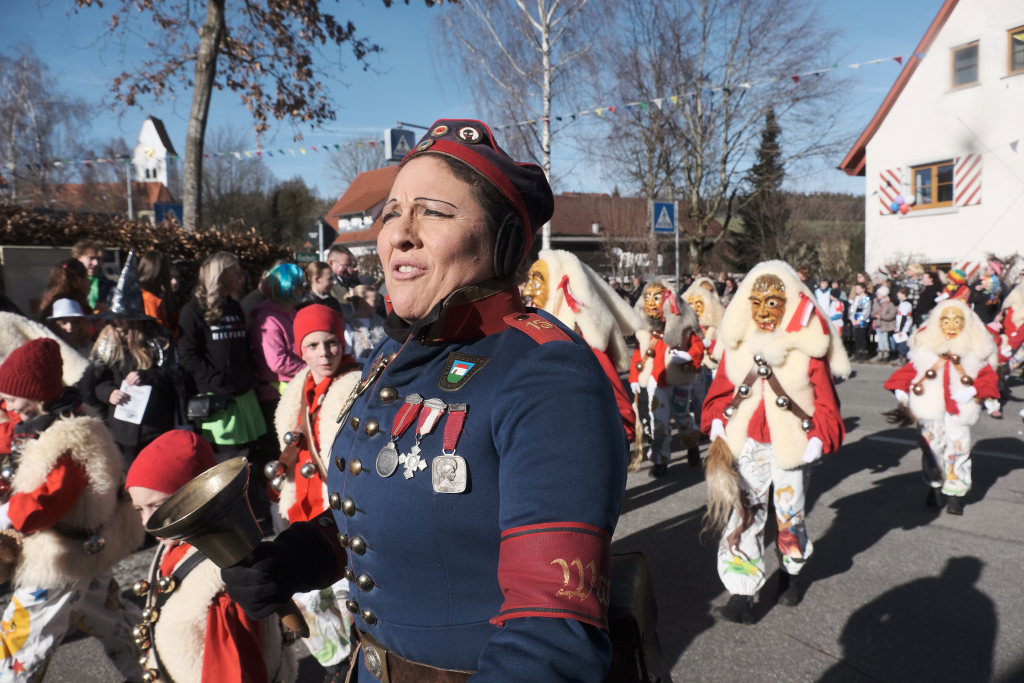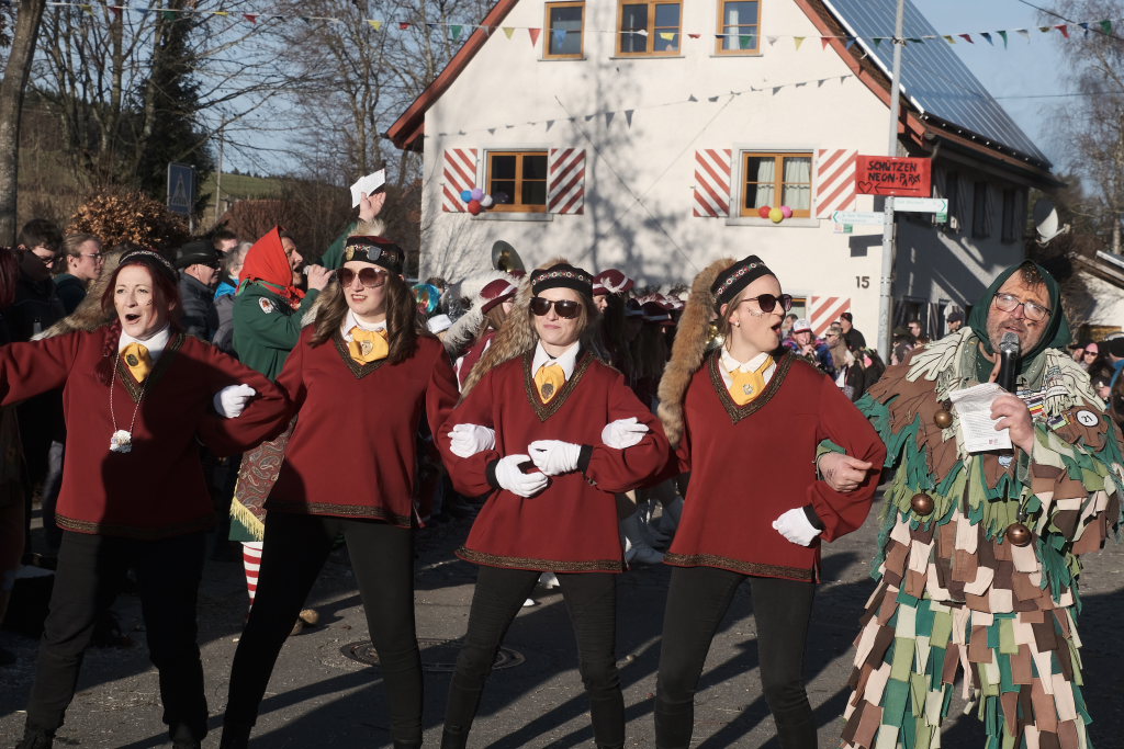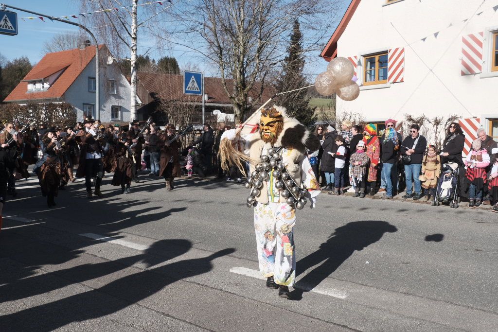 Pünktlich um 14.00 Uhr starte der närrische Lindwurm mit der Musikkapelle Haidgau an der Spitze, gefolgt von Narrensamen, Wachtmeister und Fasnetslader der gastgebenden Chadalohs. Nach dem musikalischen Intermezzo der Vogter Schalmeien folgten mit den Vogter Heufressern, der Baienfurter Henkerhaus Zunft und den Doraweibla aus Dornstadt die Patenzünfte der Chadalohs. Natürlich nicht fehlen durfte die Haidgauer „Konkurrenz“, die Haisterkircher „Z …-Sippe, die in der vergangenen Saison im Zuge des Political-Correctness-Wahns einen Teil ihres Namens eingebüßt hat.