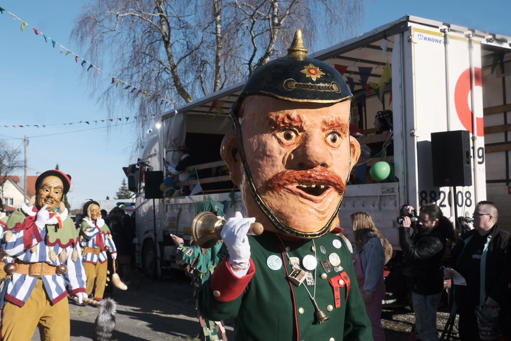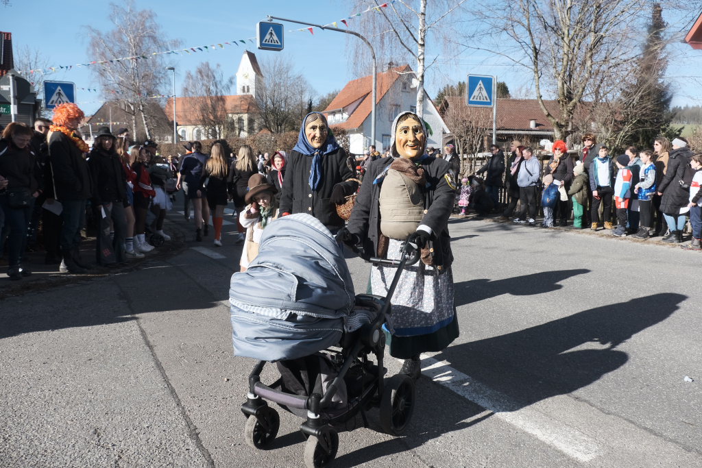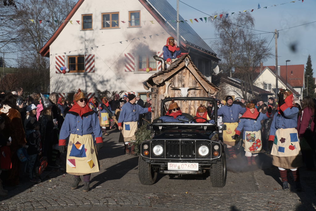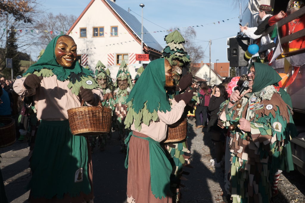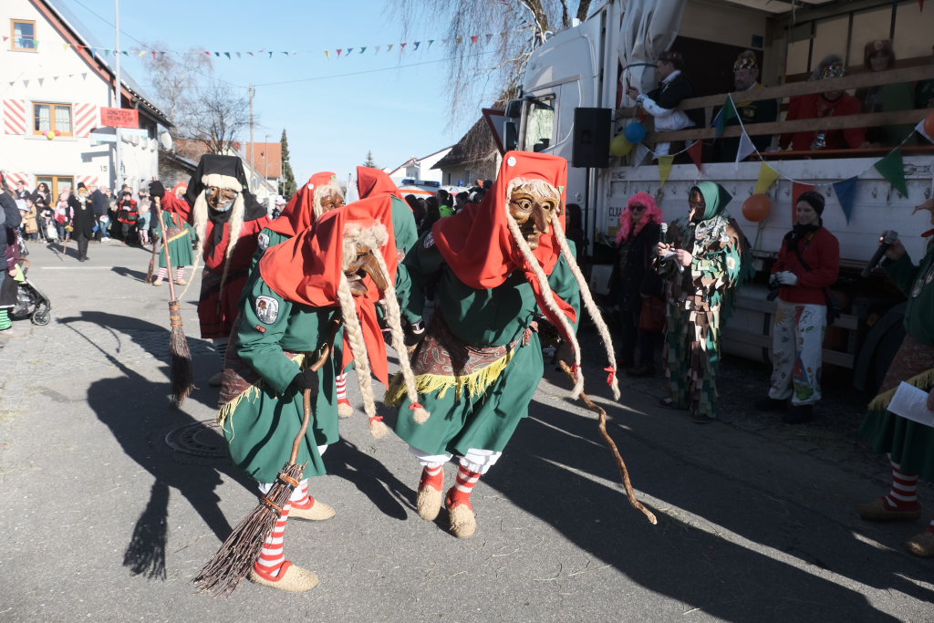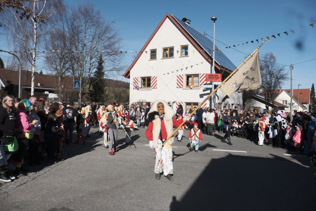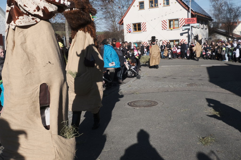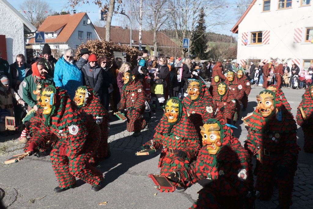 Pünktlich um 14.00 Uhr starte der närrische Lindwurm mit der Musikkapelle Haidgau an der Spitze, gefolgt von Narrensamen, Wachtmeister und Fasnetslader der gastgebenden Chadalohs. Nach dem musikalischen Intermezzo der Vogter Schalmeien folgten mit den Vogter Heufressern, der Baienfurter Henkerhaus Zunft und den Doraweibla aus Dornstadt die Patenzünfte der Chadalohs. Natürlich nicht fehlen durfte die Haidgauer „Konkurrenz“, die Haisterkircher „Z …-Sippe, die in der vergangenen Saison im Zuge des Political-Correctness-Wahns einen Teil ihres Namens eingebüßt hat.