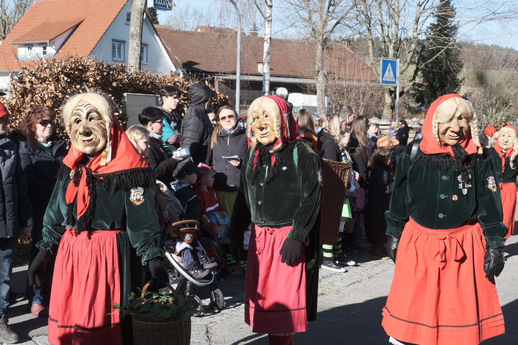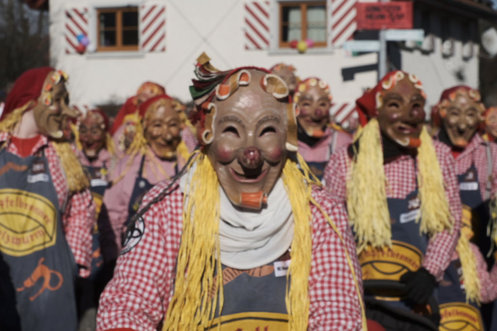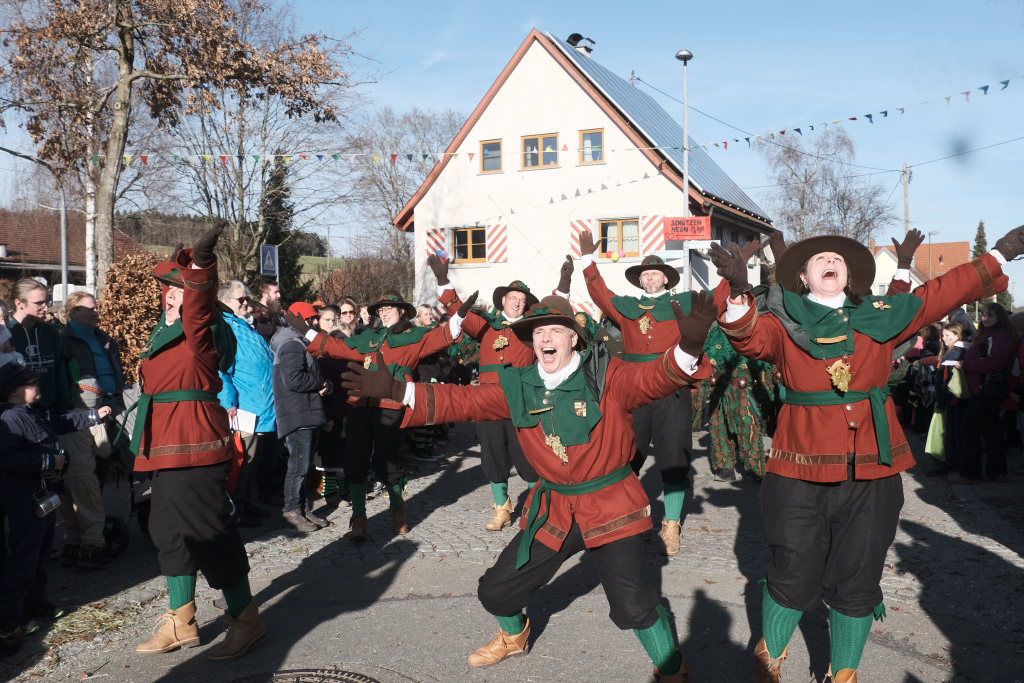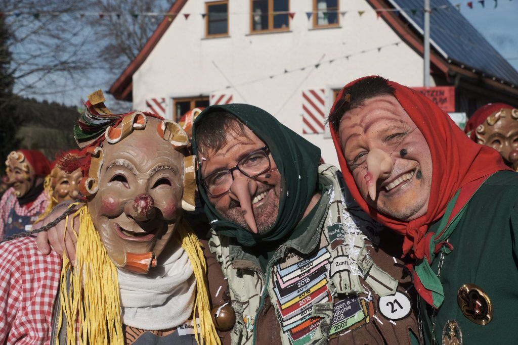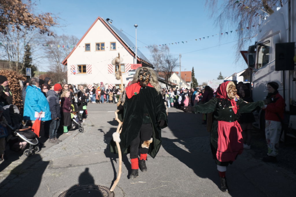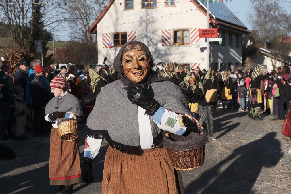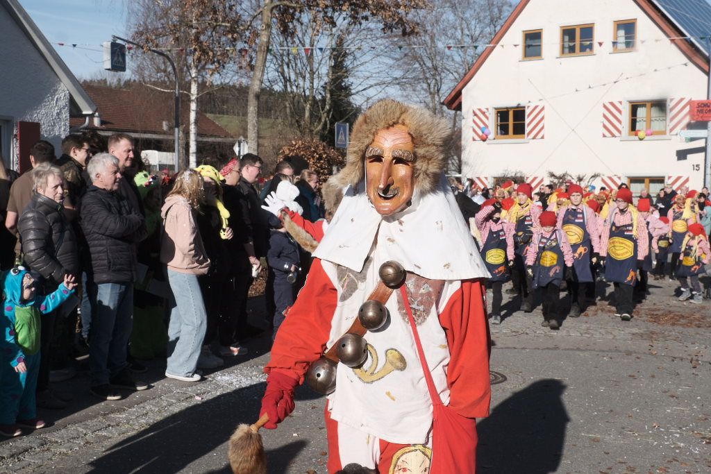 Pünktlich um 14.00 Uhr starte der närrische Lindwurm mit der Musikkapelle Haidgau an der Spitze, gefolgt von Narrensamen, Wachtmeister und Fasnetslader der gastgebenden Chadalohs. Nach dem musikalischen Intermezzo der Vogter Schalmeien folgten mit den Vogter Heufressern, der Baienfurter Henkerhaus Zunft und den Doraweibla aus Dornstadt die Patenzünfte der Chadalohs. Natürlich nicht fehlen durfte die Haidgauer „Konkurrenz“, die Haisterkircher „Z …-Sippe, die in der vergangenen Saison im Zuge des Political-Correctness-Wahns einen Teil ihres Namens eingebüßt hat.