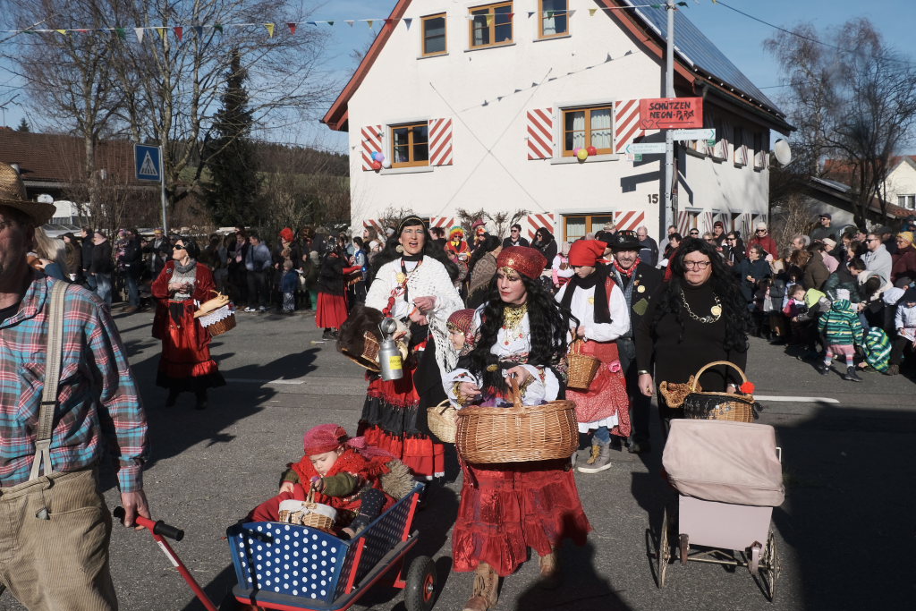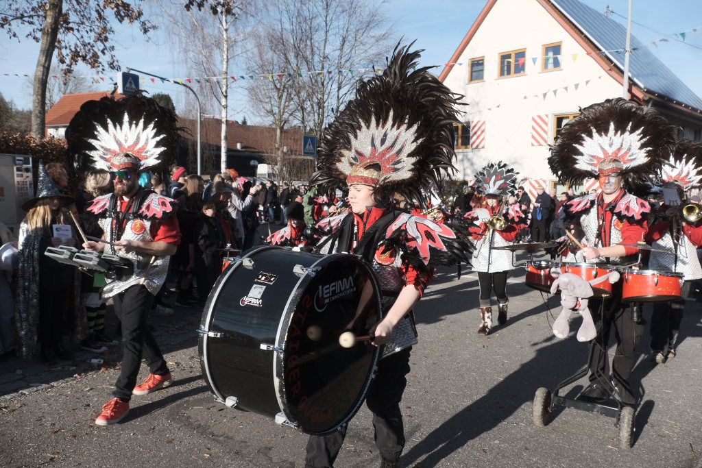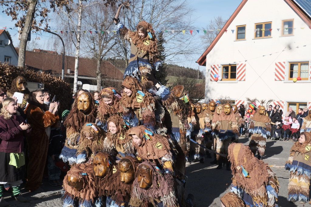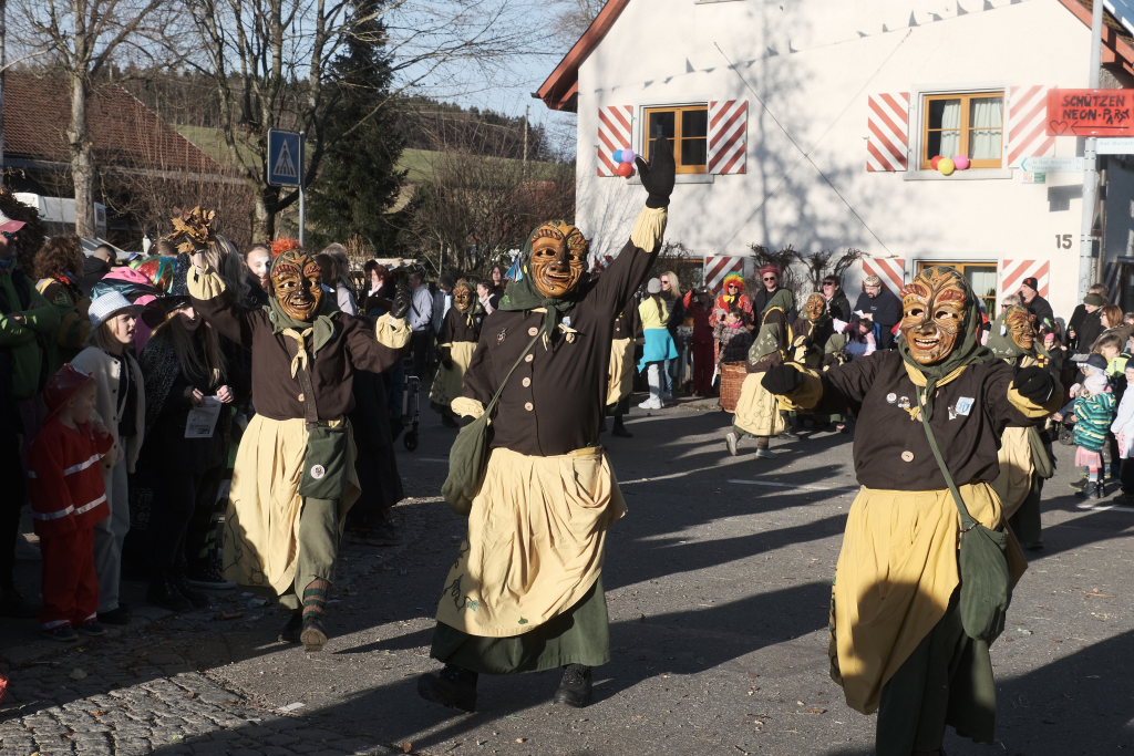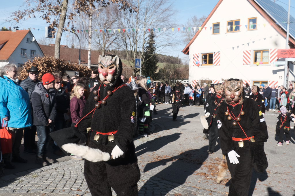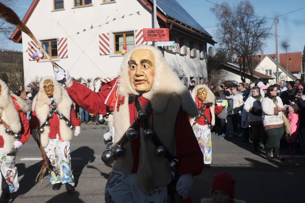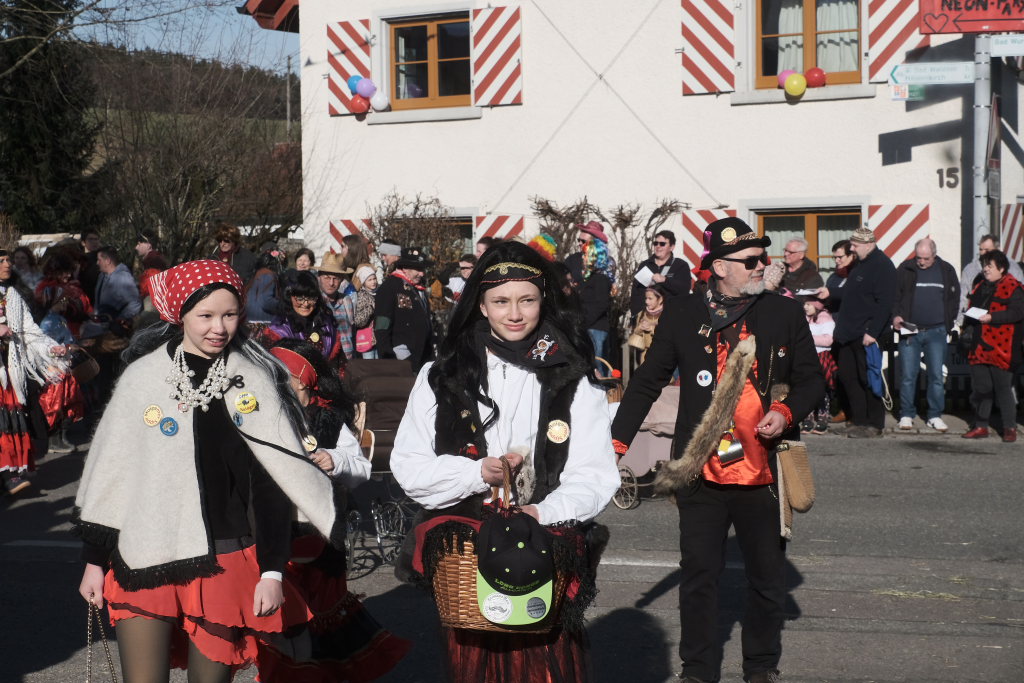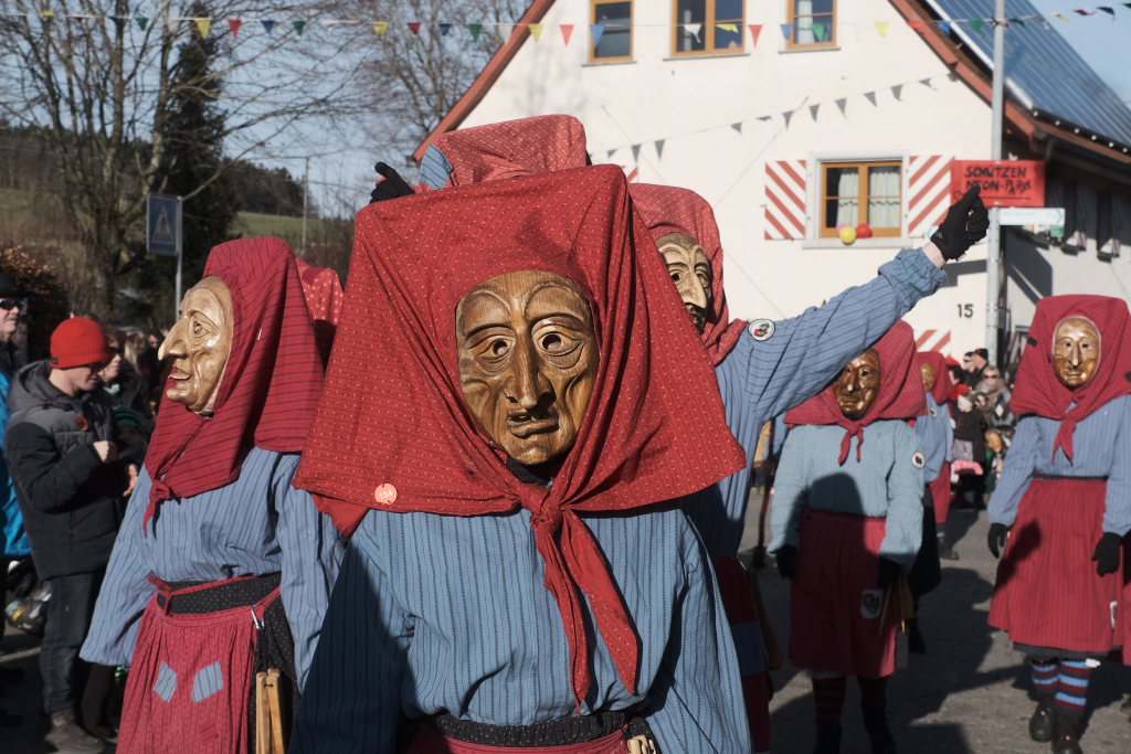 Pünktlich um 14.00 Uhr starte der närrische Lindwurm mit der Musikkapelle Haidgau an der Spitze, gefolgt von Narrensamen, Wachtmeister und Fasnetslader der gastgebenden Chadalohs. Nach dem musikalischen Intermezzo der Vogter Schalmeien folgten mit den Vogter Heufressern, der Baienfurter Henkerhaus Zunft und den Doraweibla aus Dornstadt die Patenzünfte der Chadalohs. Natürlich nicht fehlen durfte die Haidgauer „Konkurrenz“, die Haisterkircher „Z …-Sippe, die in der vergangenen Saison im Zuge des Political-Correctness-Wahns einen Teil ihres Namens eingebüßt hat.
